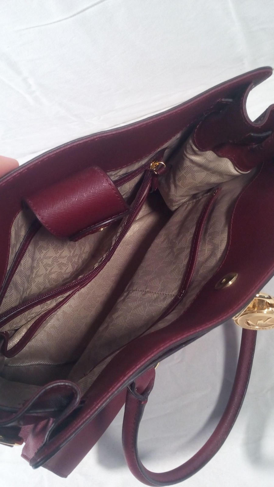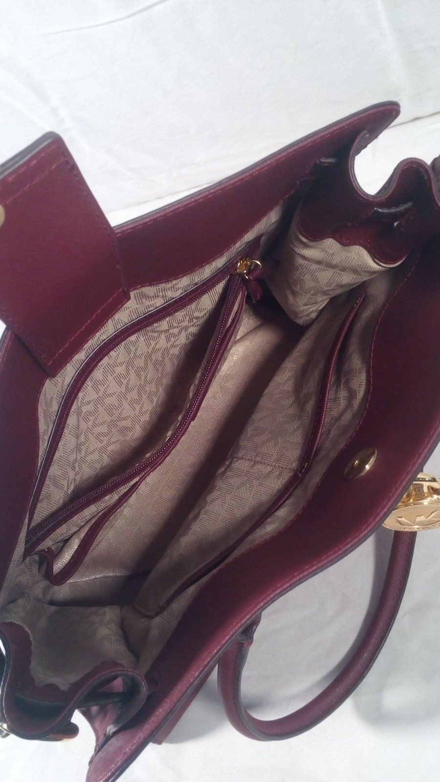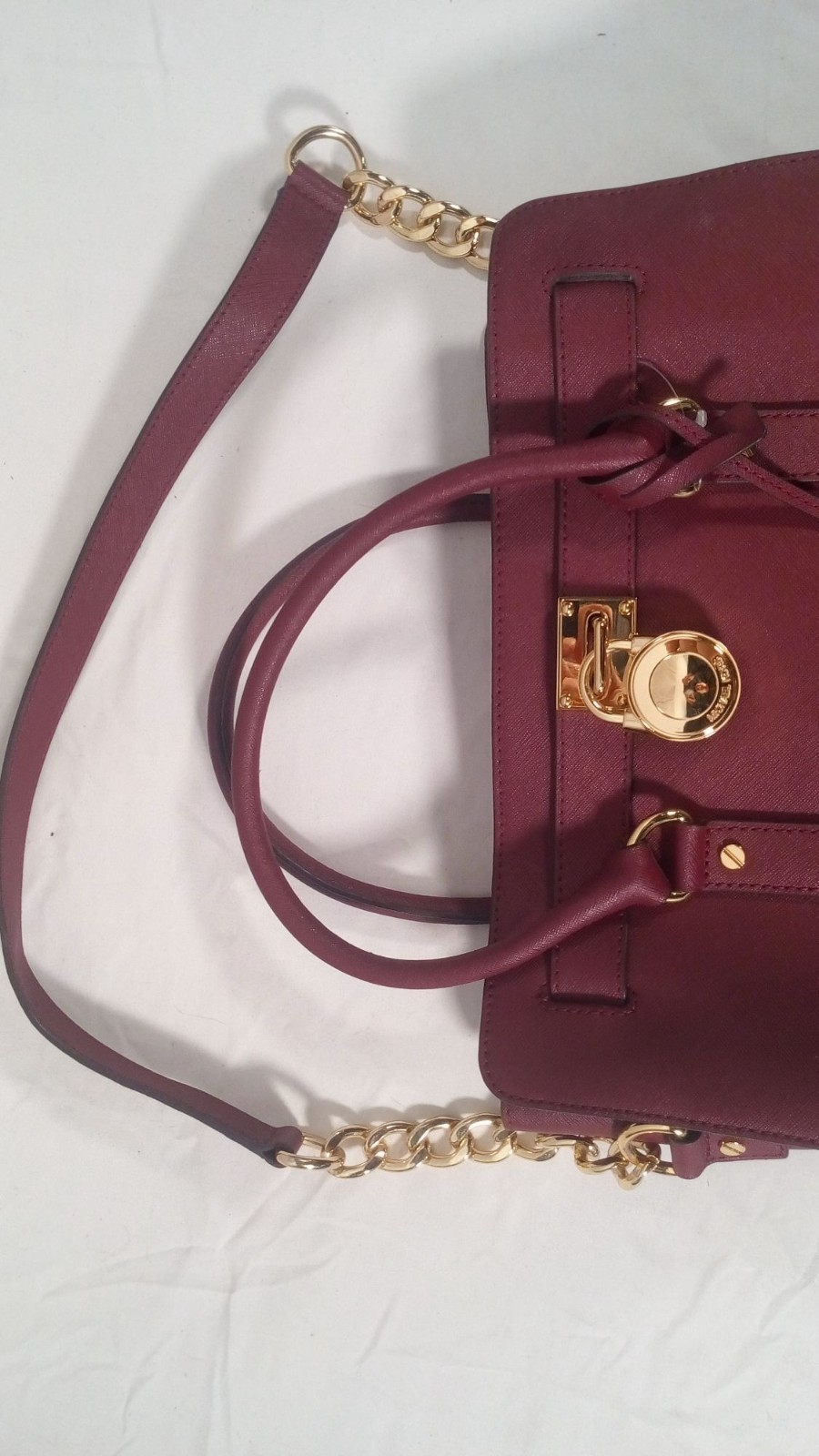 Burgundy Faux Leather Tote Bag With Gold Chain Strap & Lock Accent