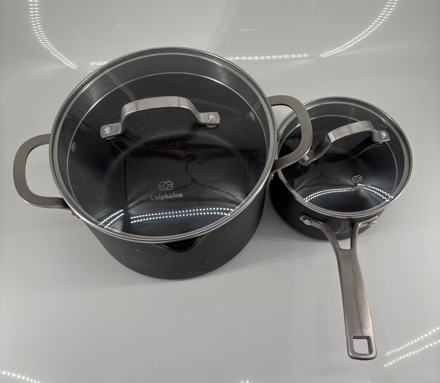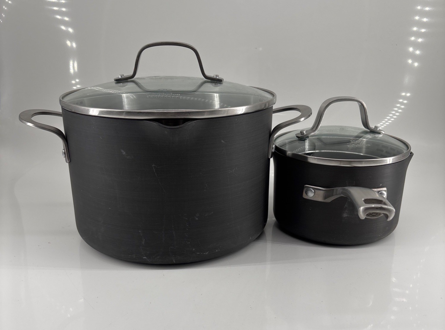 CALPHALON Set of 2 Nonstick Pots w/ Lids- 1.5qt & 6qt- Preowned