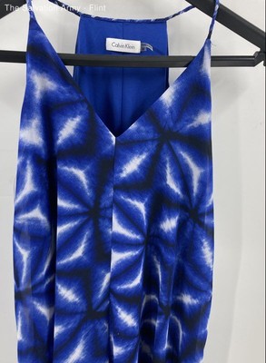 Calvin Klein Womens Blue Abstract Sleeveless V-Neck Slip Dress Size 8