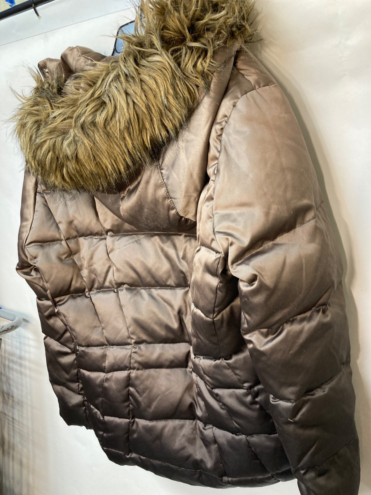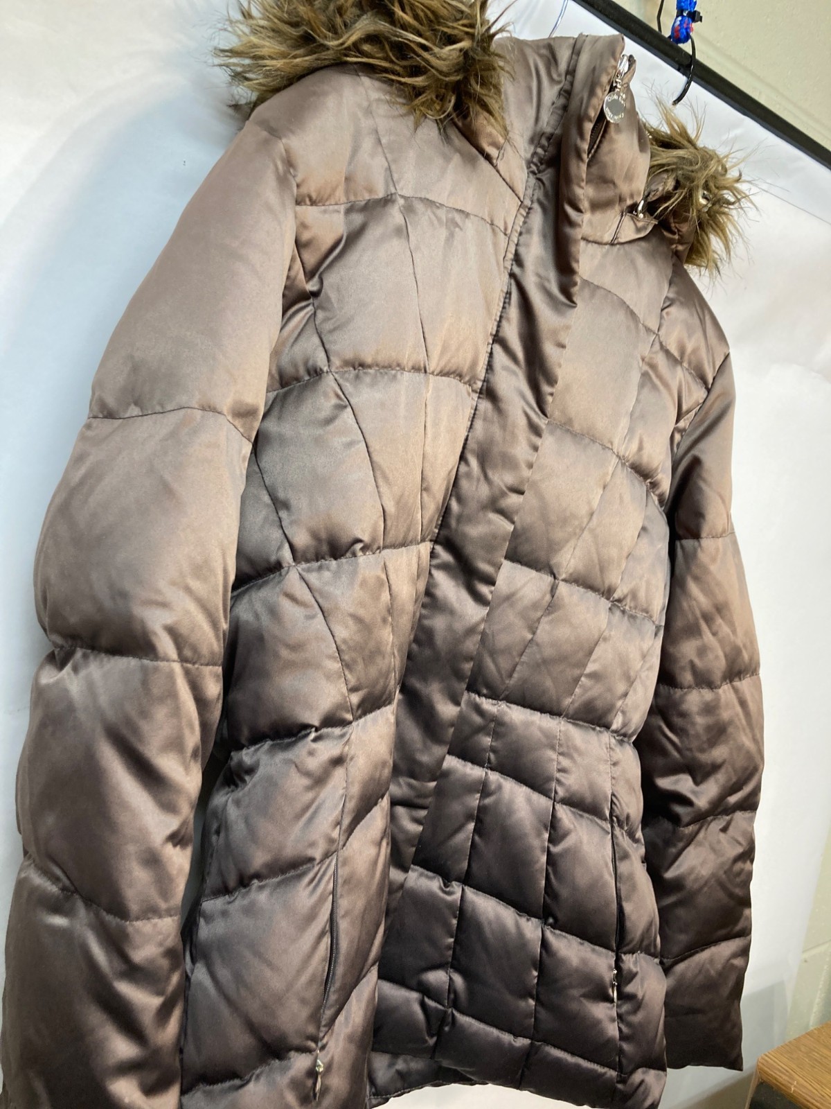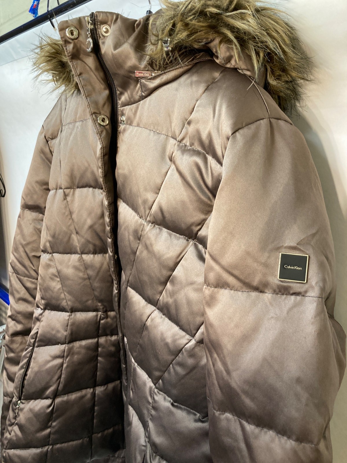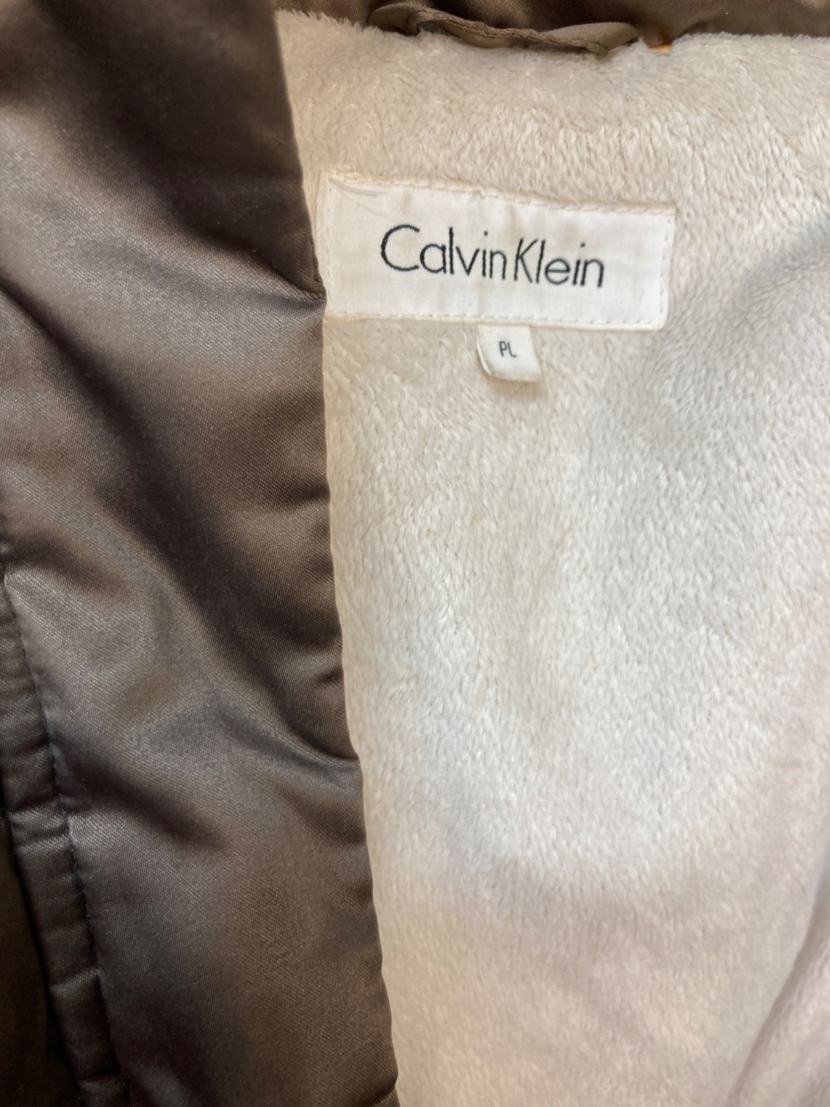 Calvin Klein Womens Quilted Fur Hooded Puffer Coat In Brown Size PL With Zipper
