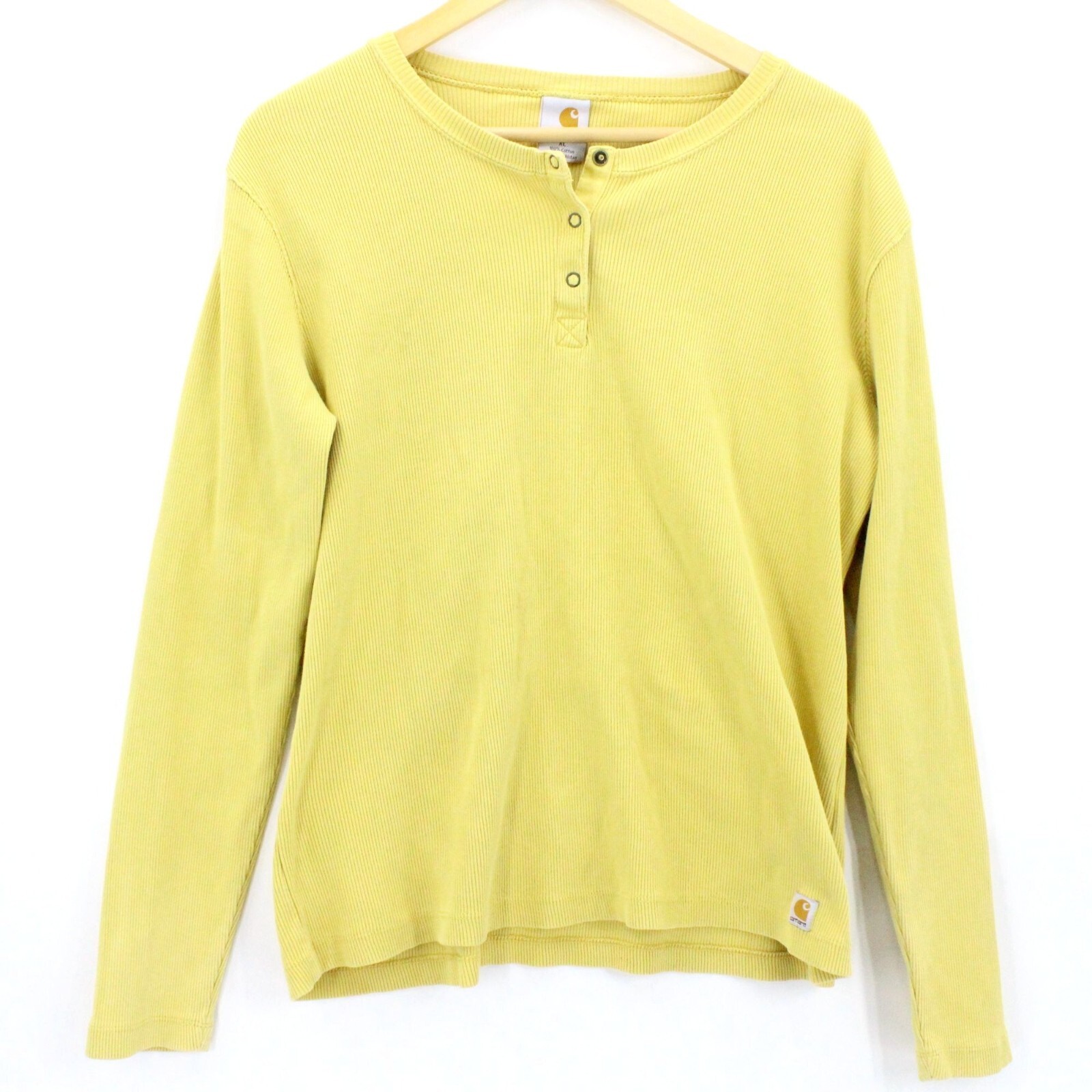 Carhartt Henley Top Women's Casual Yellow Beige Ribbed Long Sleeve Work Sz XL