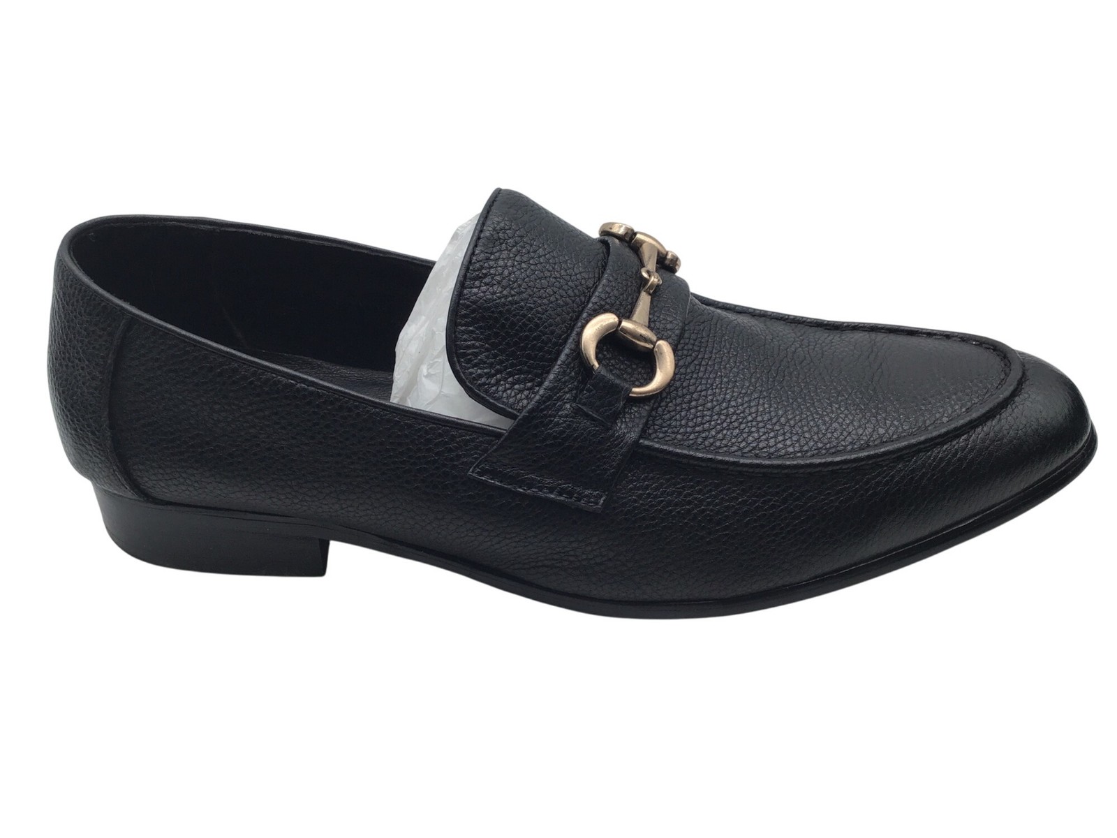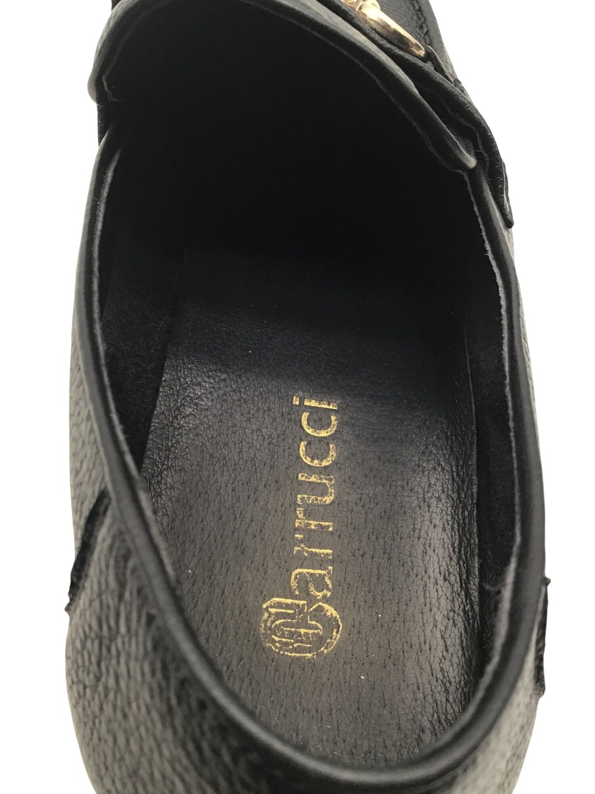 Carucci Men's Black Leather Loafers With Gold Buckle Detail Size 12D With Box
