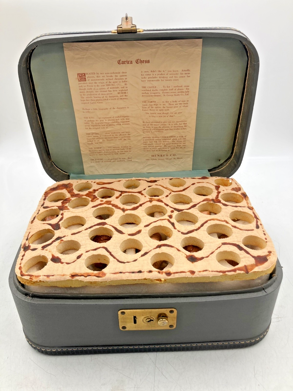 Carved Chess Piece Set "Carica Chess" In Leather Case By Henric & Co.