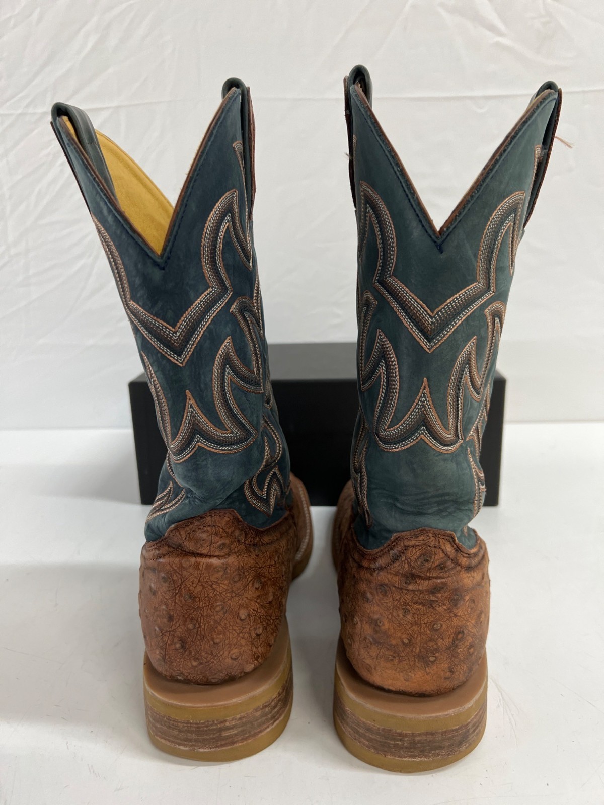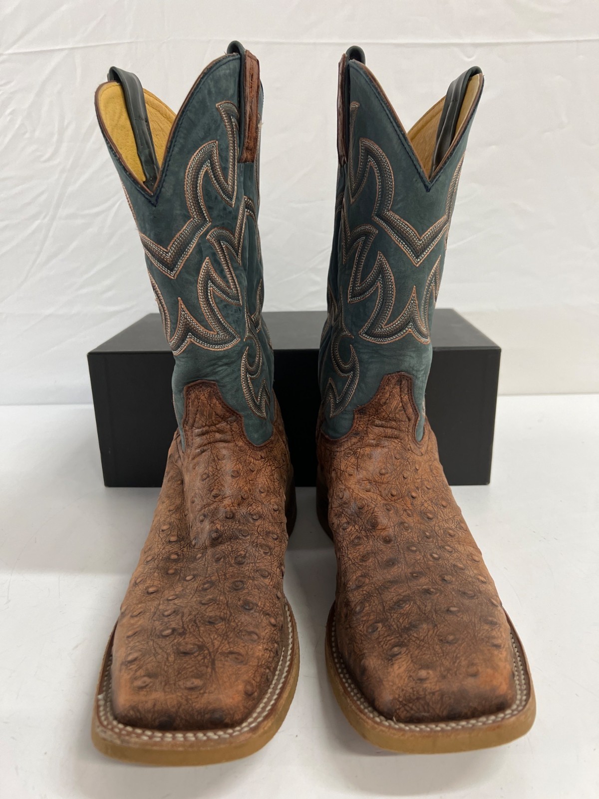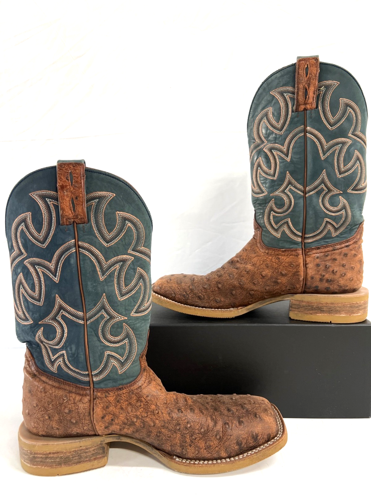 Cavender's Brown Leather Blue Shaft Square Toe Cowboy Western Boots - Size 10D