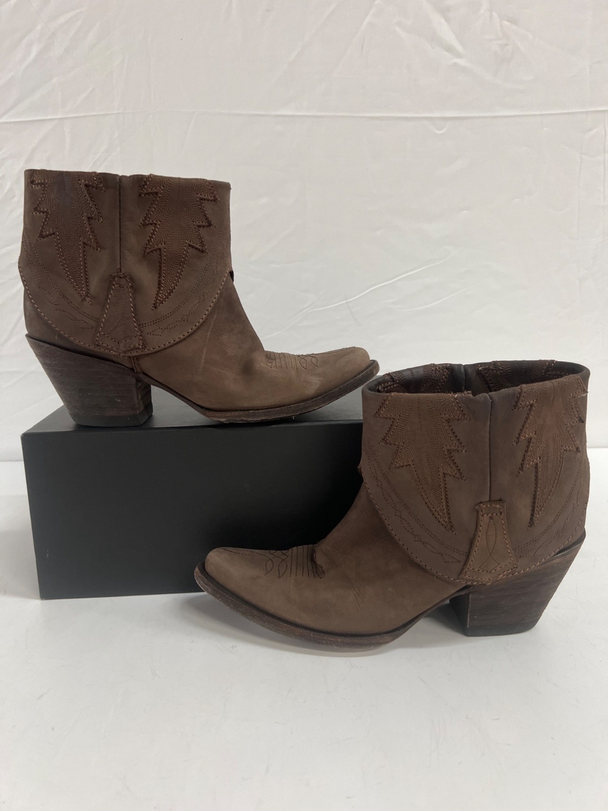 CAVENDER'S Brown Leather Western Folded Ankle Boots Women Size 7.5B