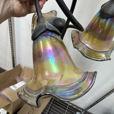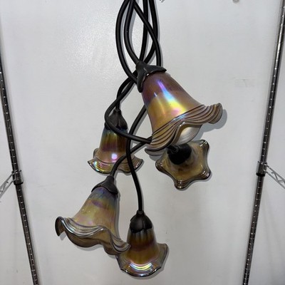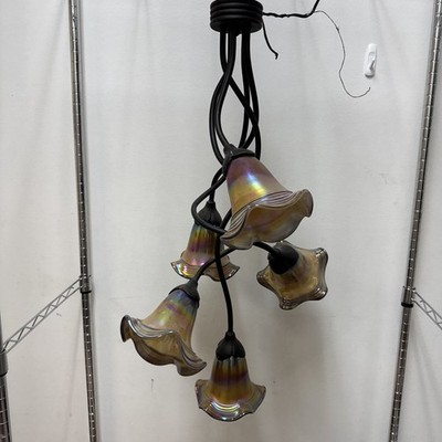 Chandelier Iridescent 5 Light Shades Signed Todd Phillips By Quoize