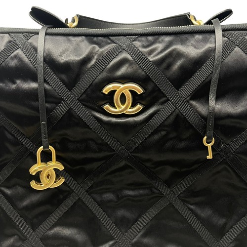 Chanel Black Nylon Large Travel Bag Gold-Tone Hardware Tote Duffle Bag 2022