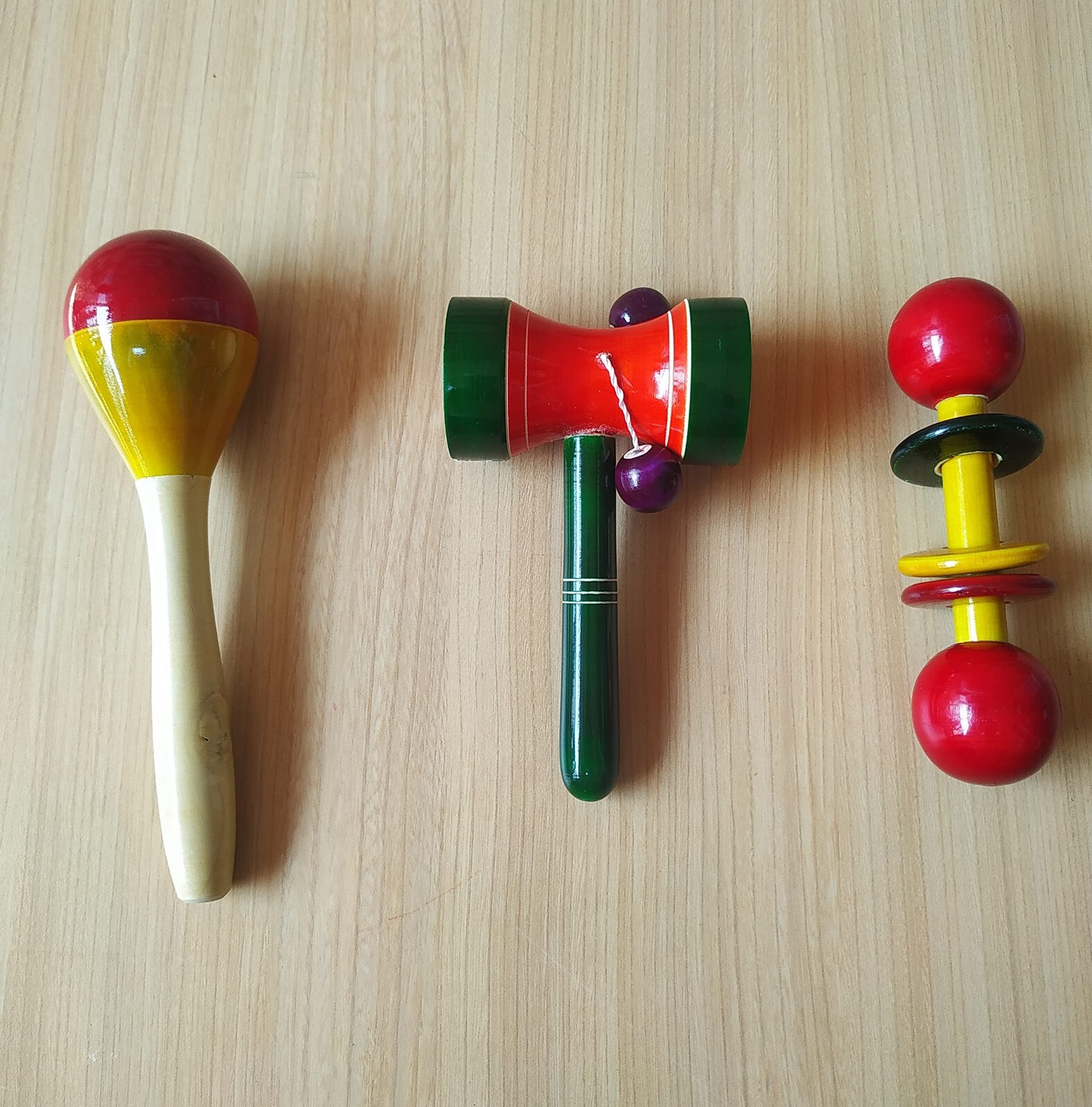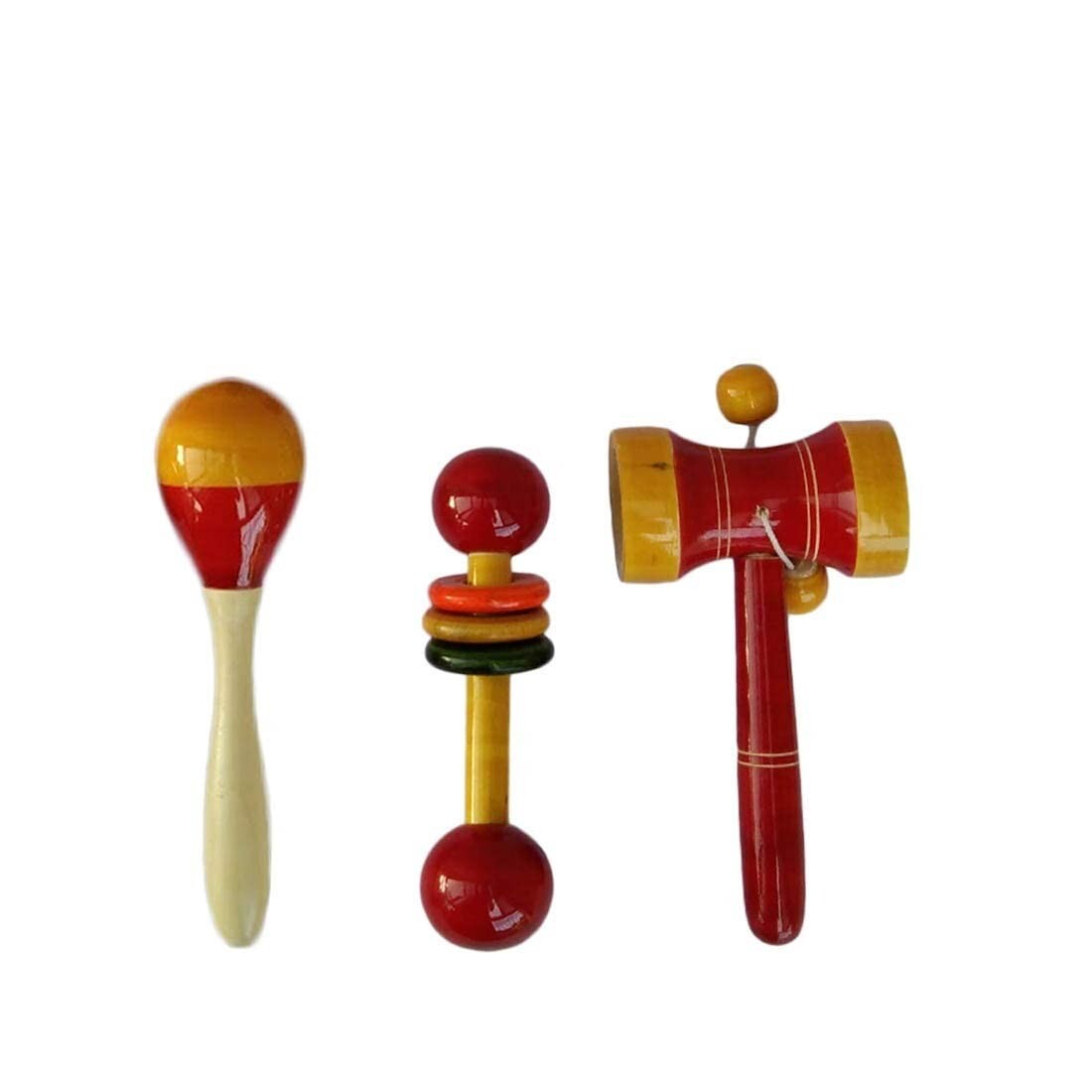 Channapatna Toys Wooden rattles for Baby/Infants - Set of 3 pcs - Multicolor