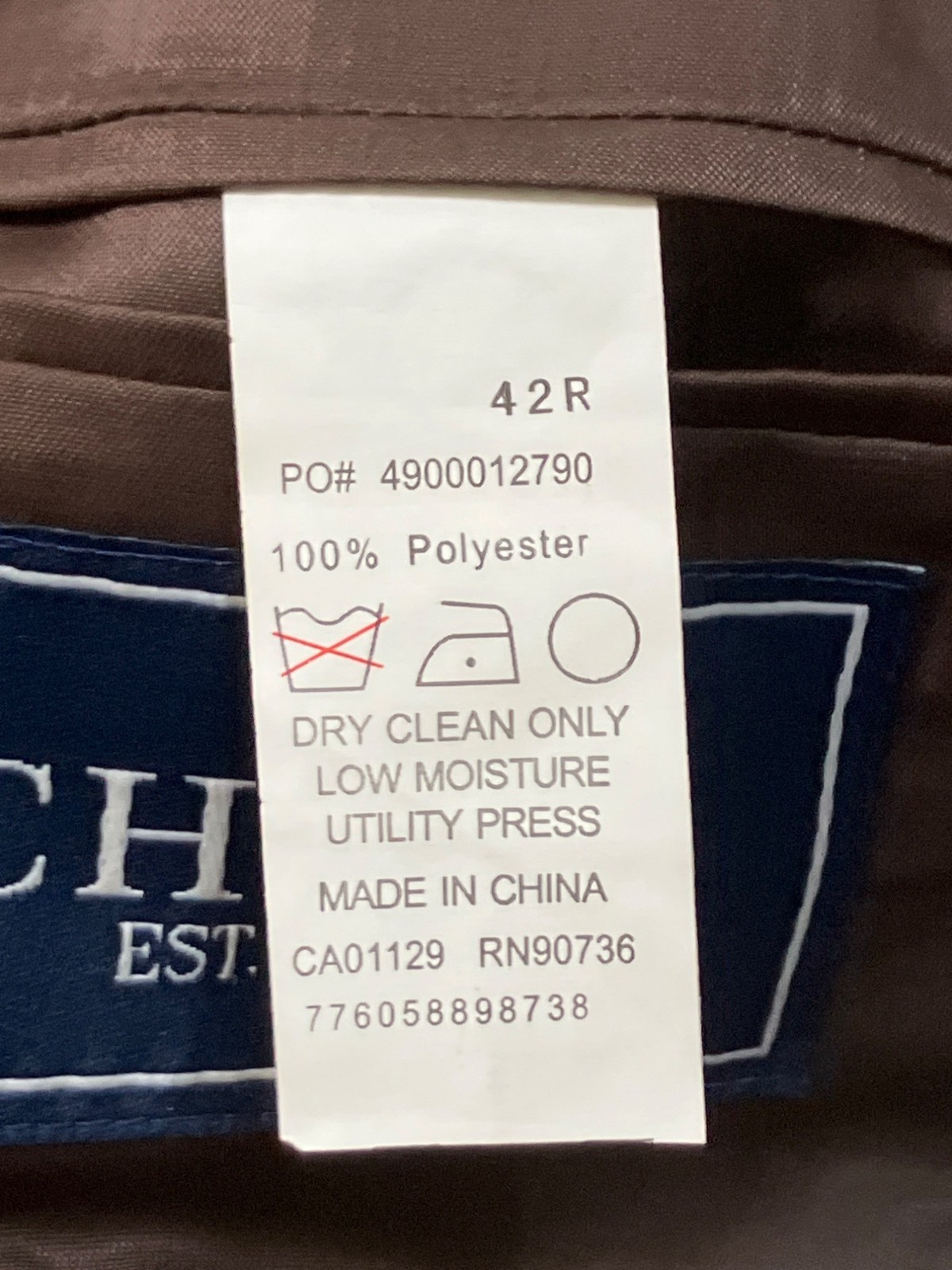 Chaps (COOP14PX0083) Mens Brown Suit Coat Blazer (NWT) size 42 Reg