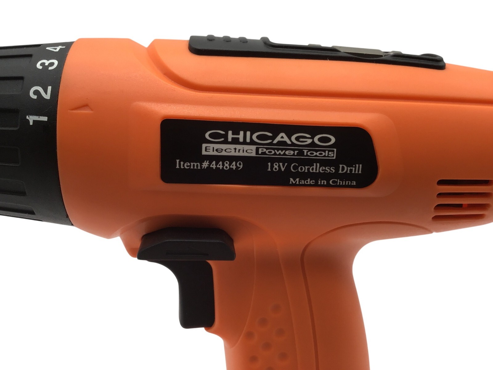 Chicago Electric 18V Cordless Drill Set With Case Charger & Bits - Working