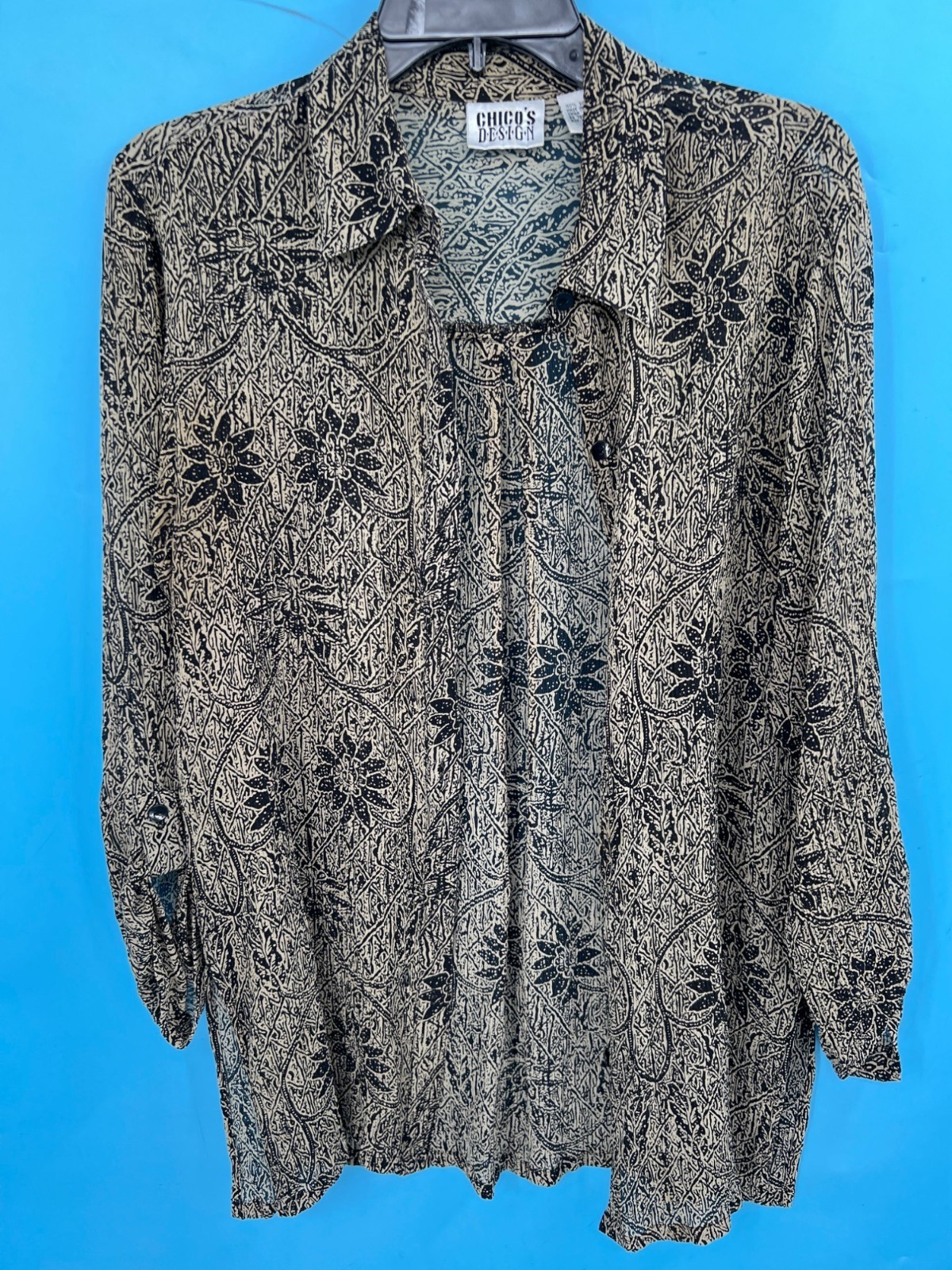 Chico's Design Womens 100% Silk Floral Button Shirt - Size-1
