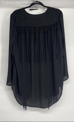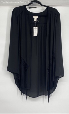 Chico's Womens Black Open-Front Casual Poncho Shawl With Fringe One Size