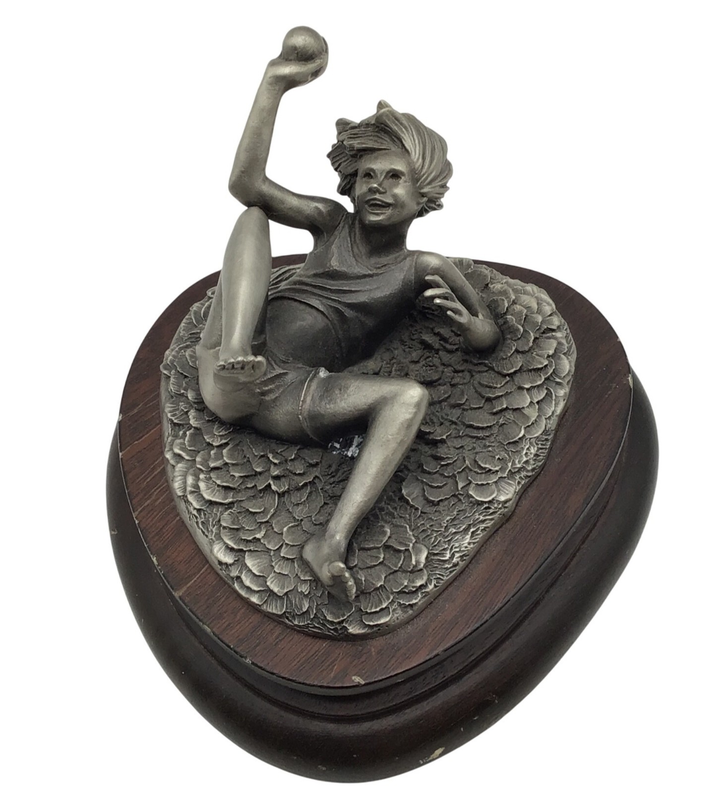 Chilmark Pewter Sculpture "One Of The Team" 1977 Baseball Figure W/ Wooden Base