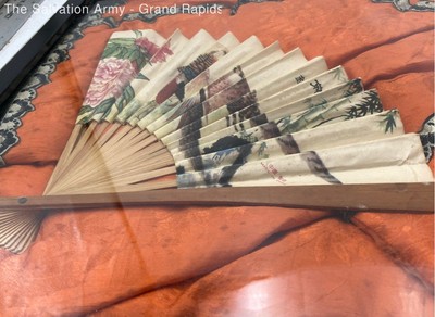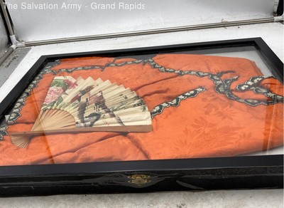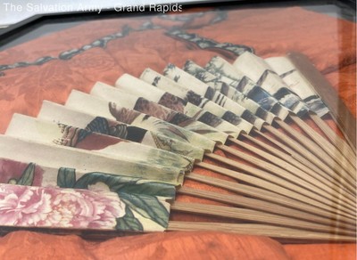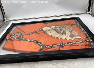 Chinese Embroidered Orange Garment With Fan Wall Decor Art Framed