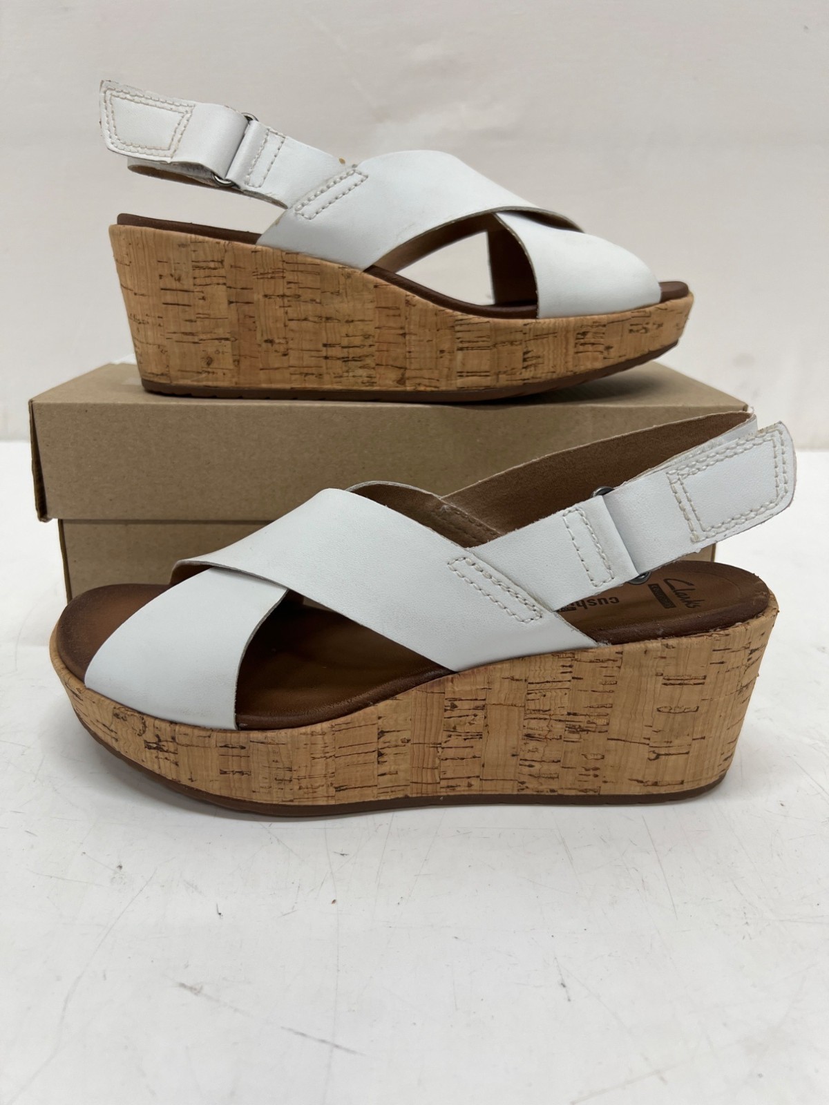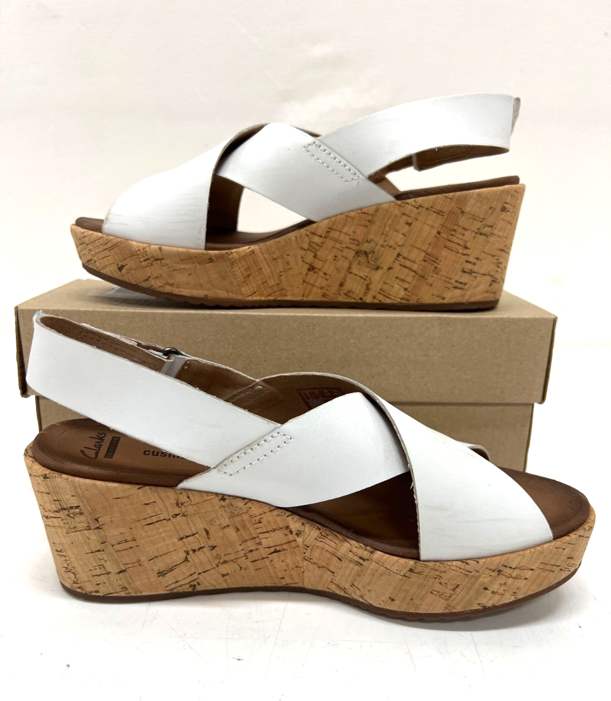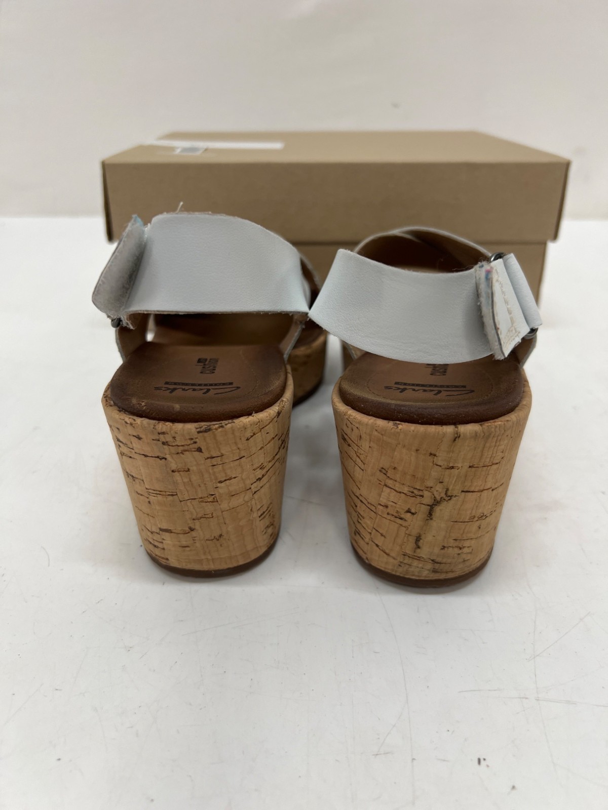 Clarks Stasha Hale Womens White Cork Wedge Sandals (size 7.5 M)