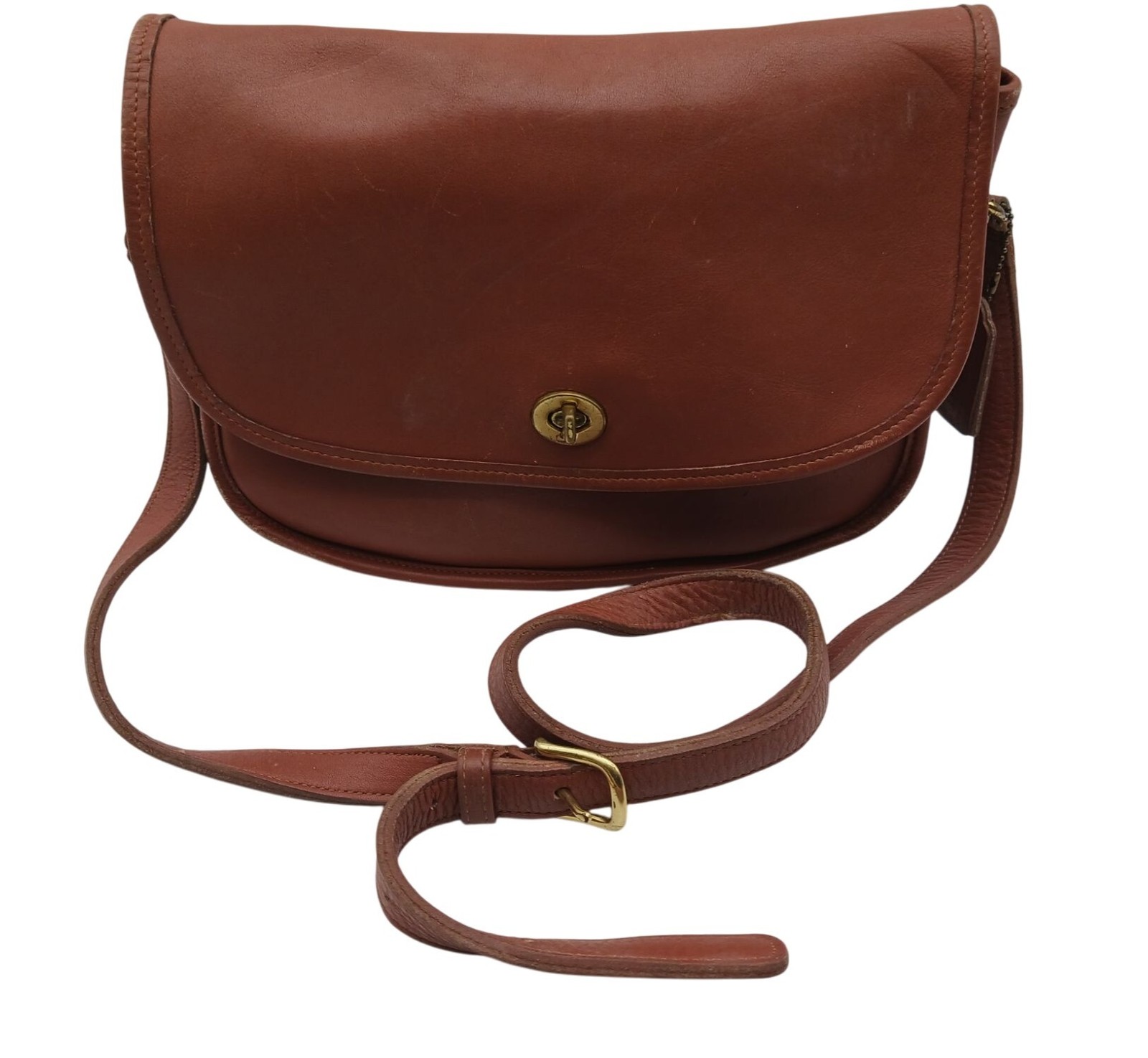 Coach Brown Leather Crossbody Bag With Turn Lock Closure & Adjustable Strap