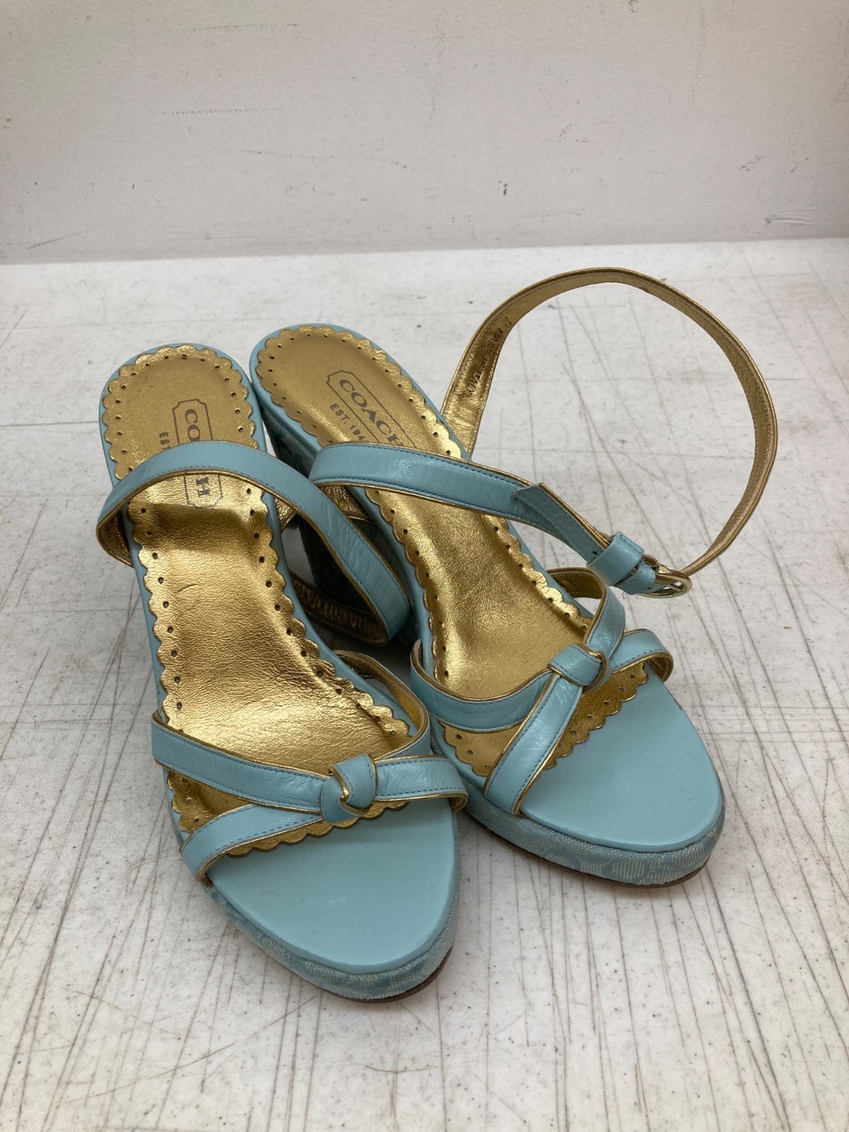 Coach Cathleen Light Blue & Gold Wedge Sandals Womens Size 8.5 Made In Italy