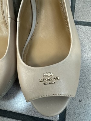 Coach Ferry Tan Patent Leather Cork Wedge Sandals Size 10 B
