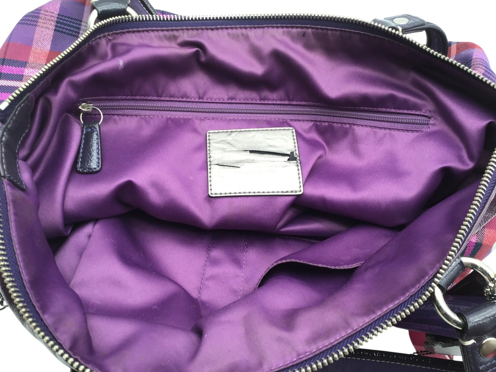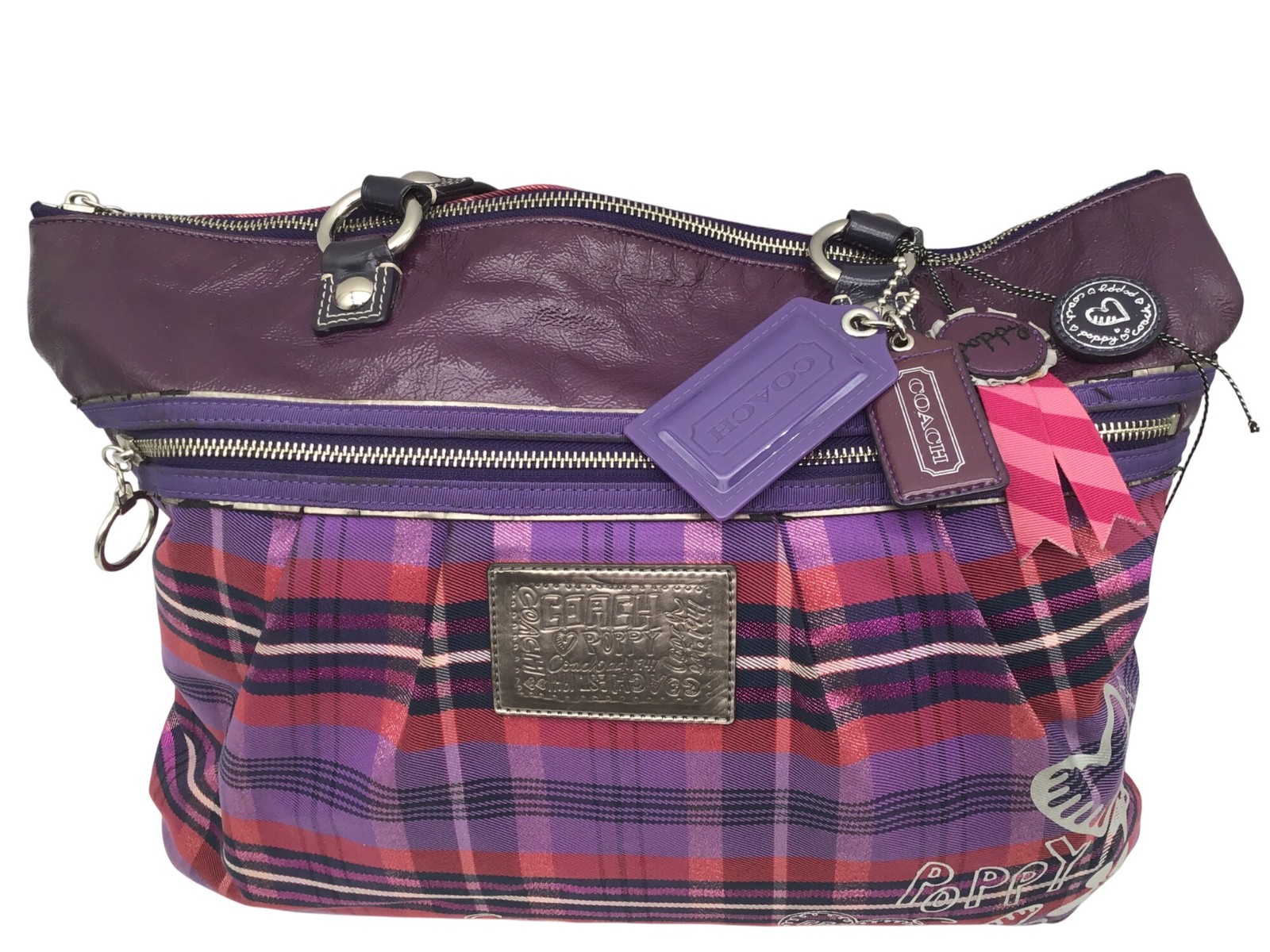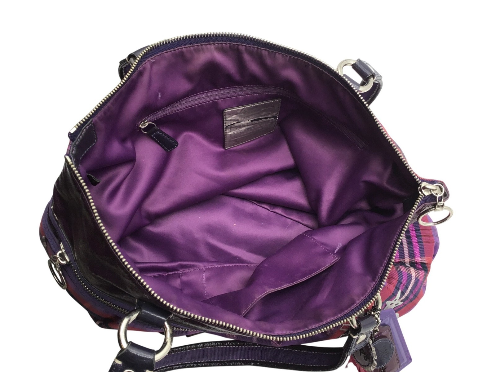 Coach Poppy Plaid Shoulder Bag Purple Pink Checkered Print Large Tote