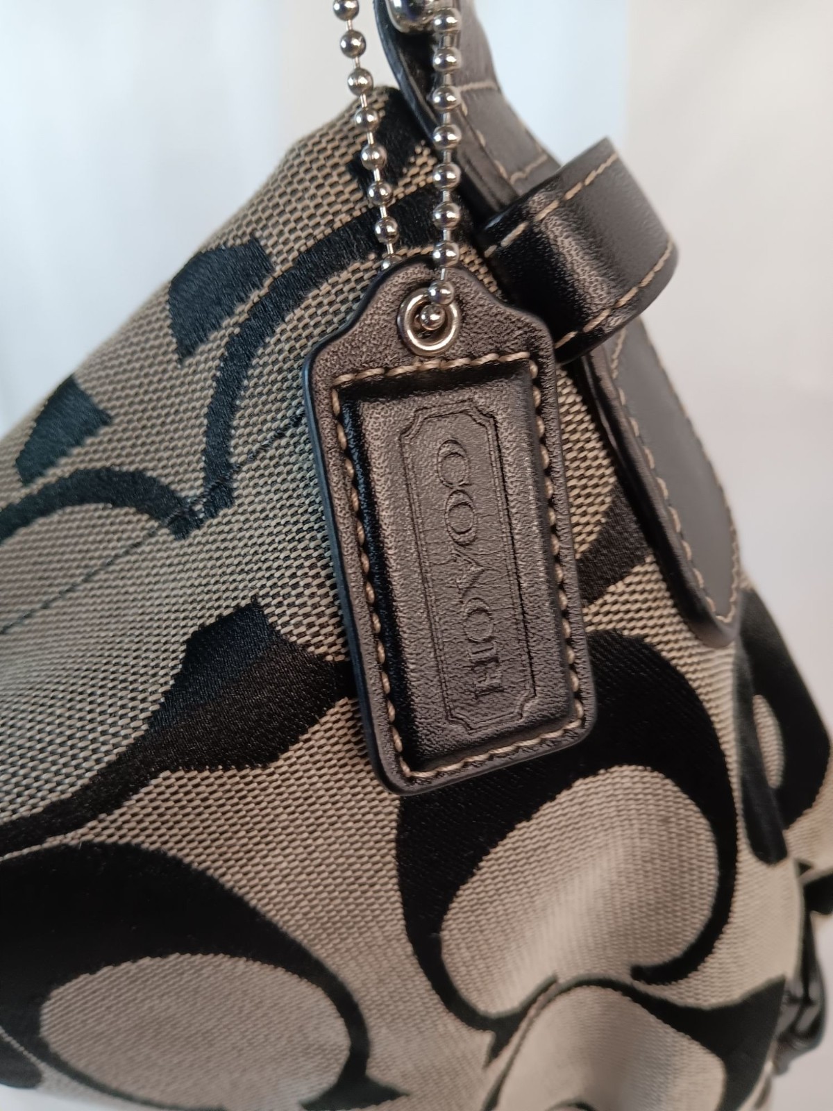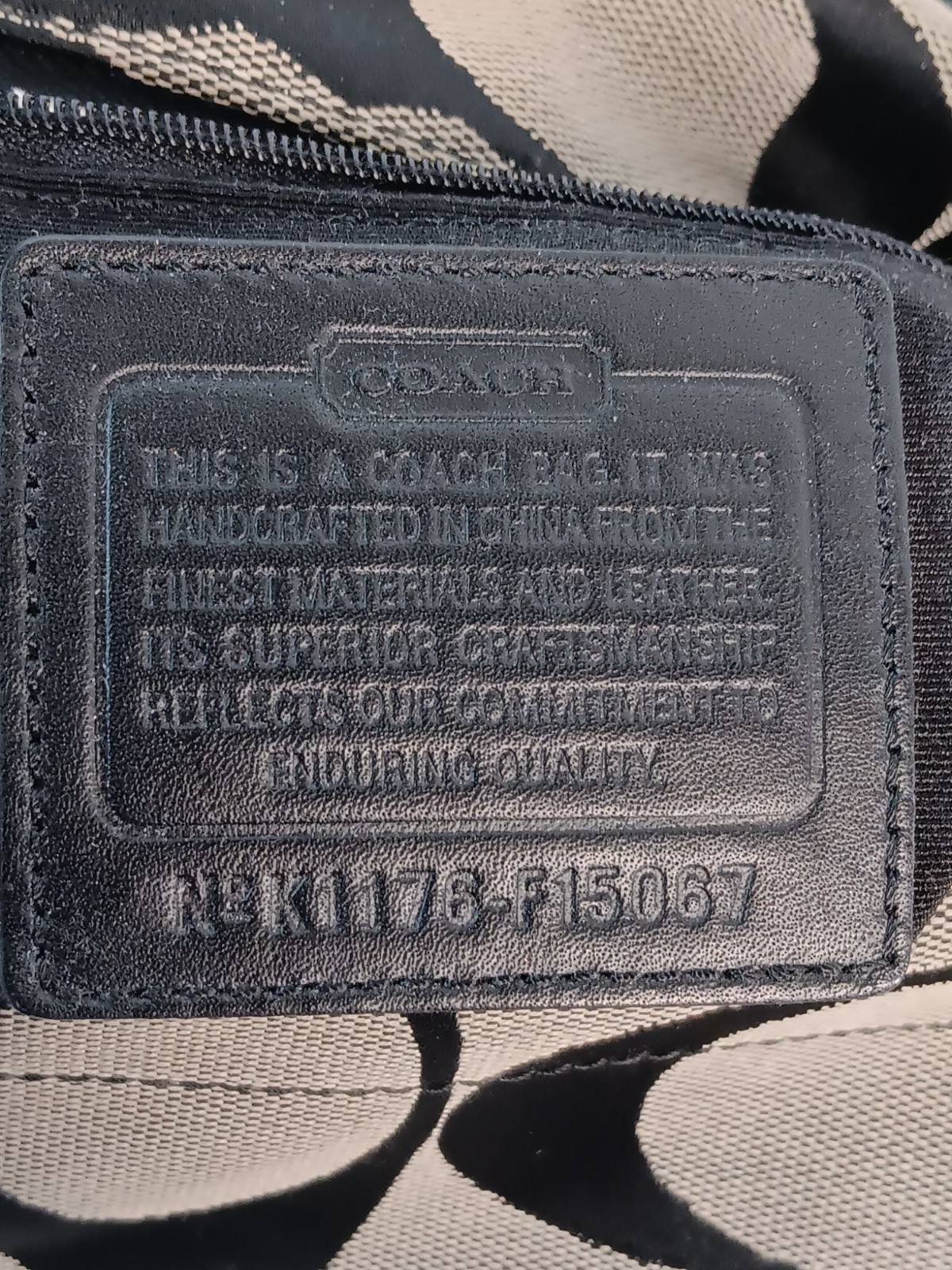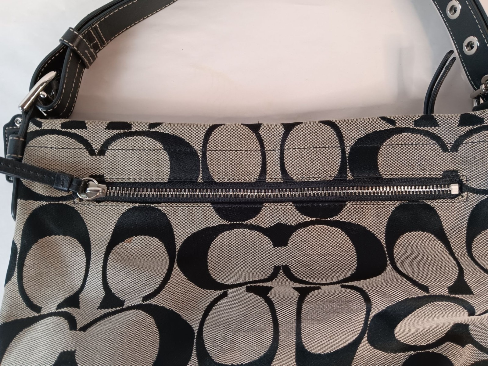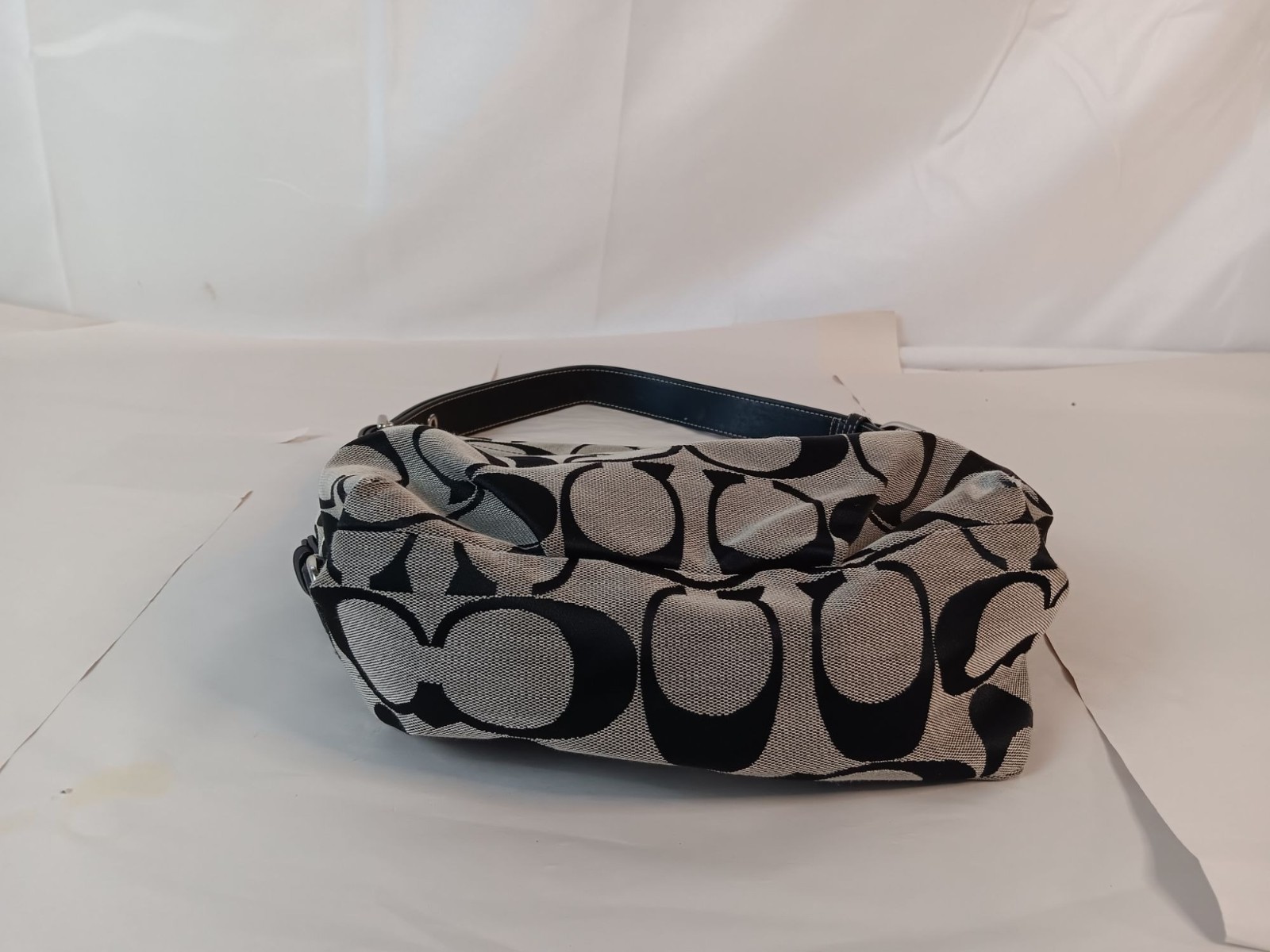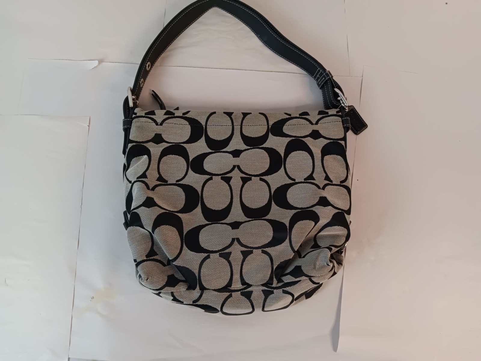 Coach Signature Black & Gray Fabric Shoulder Bag With Adjustable Strap