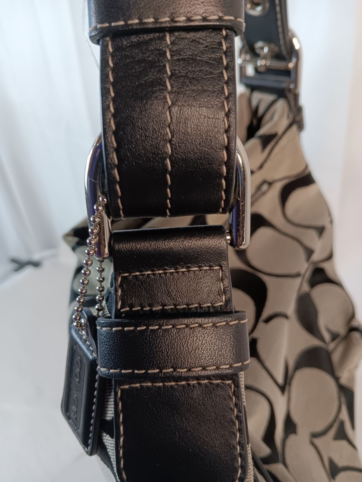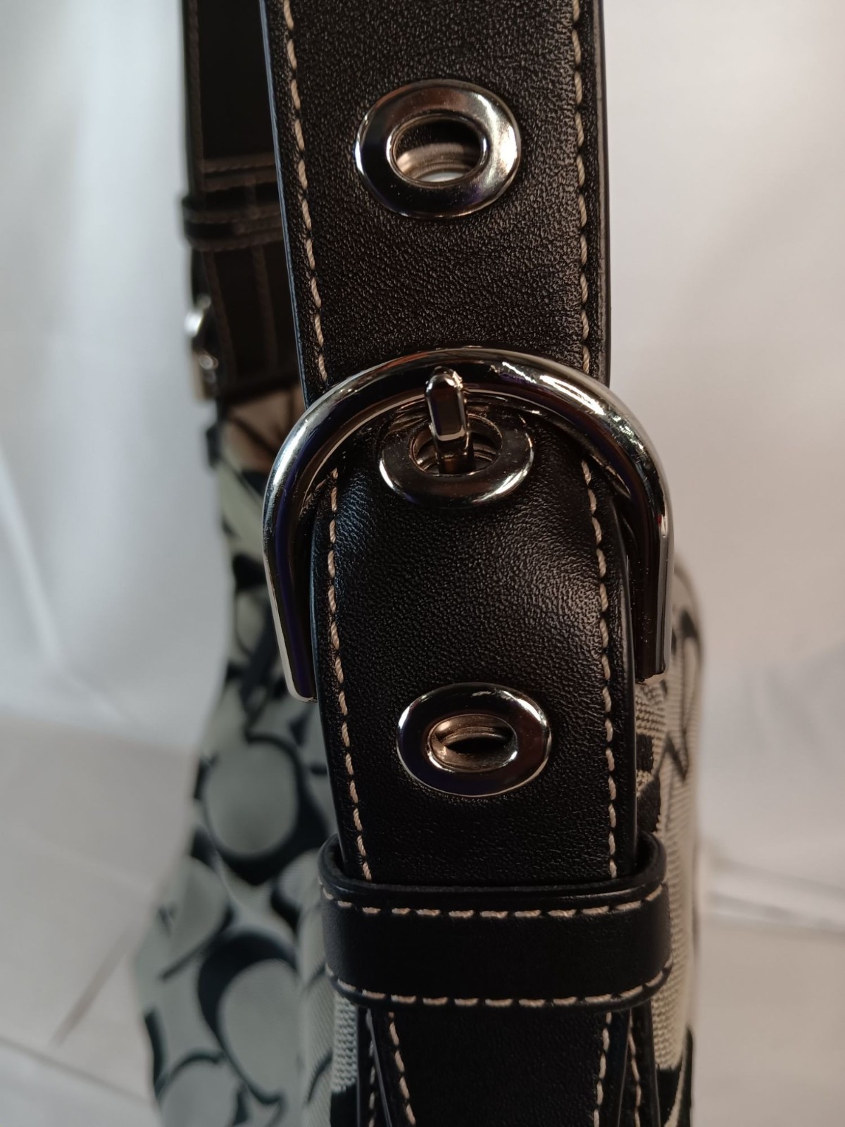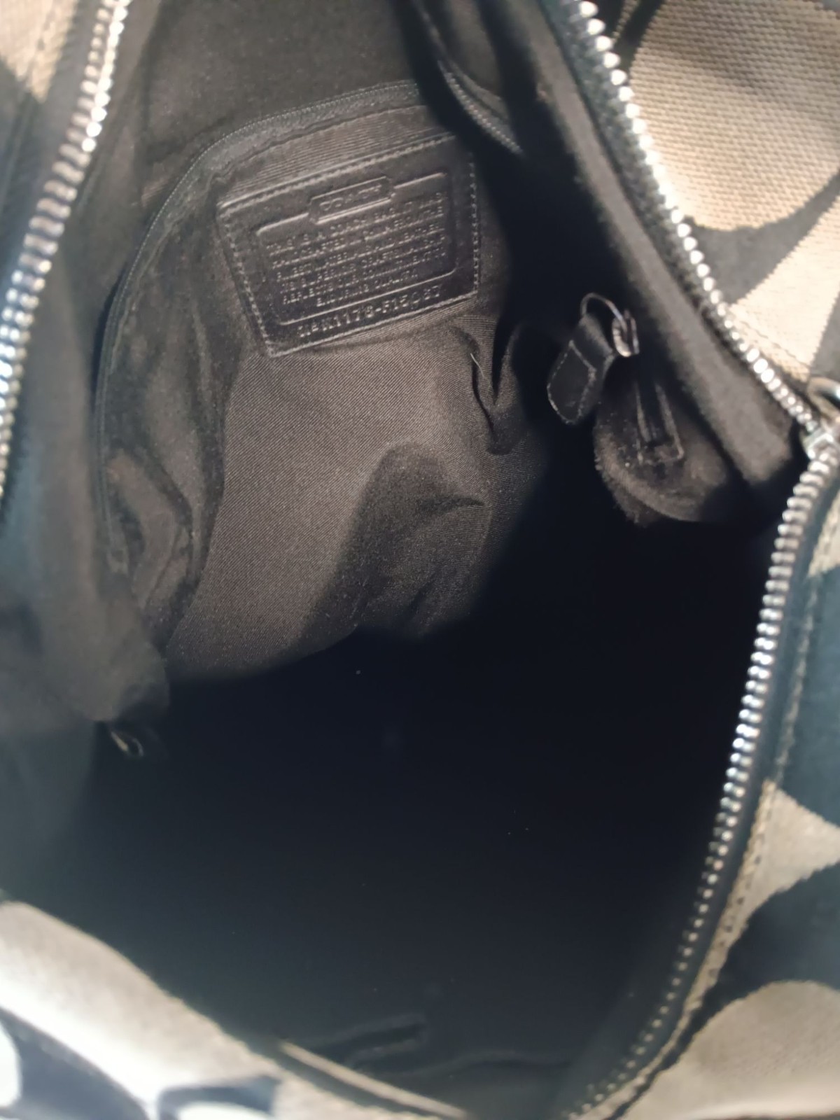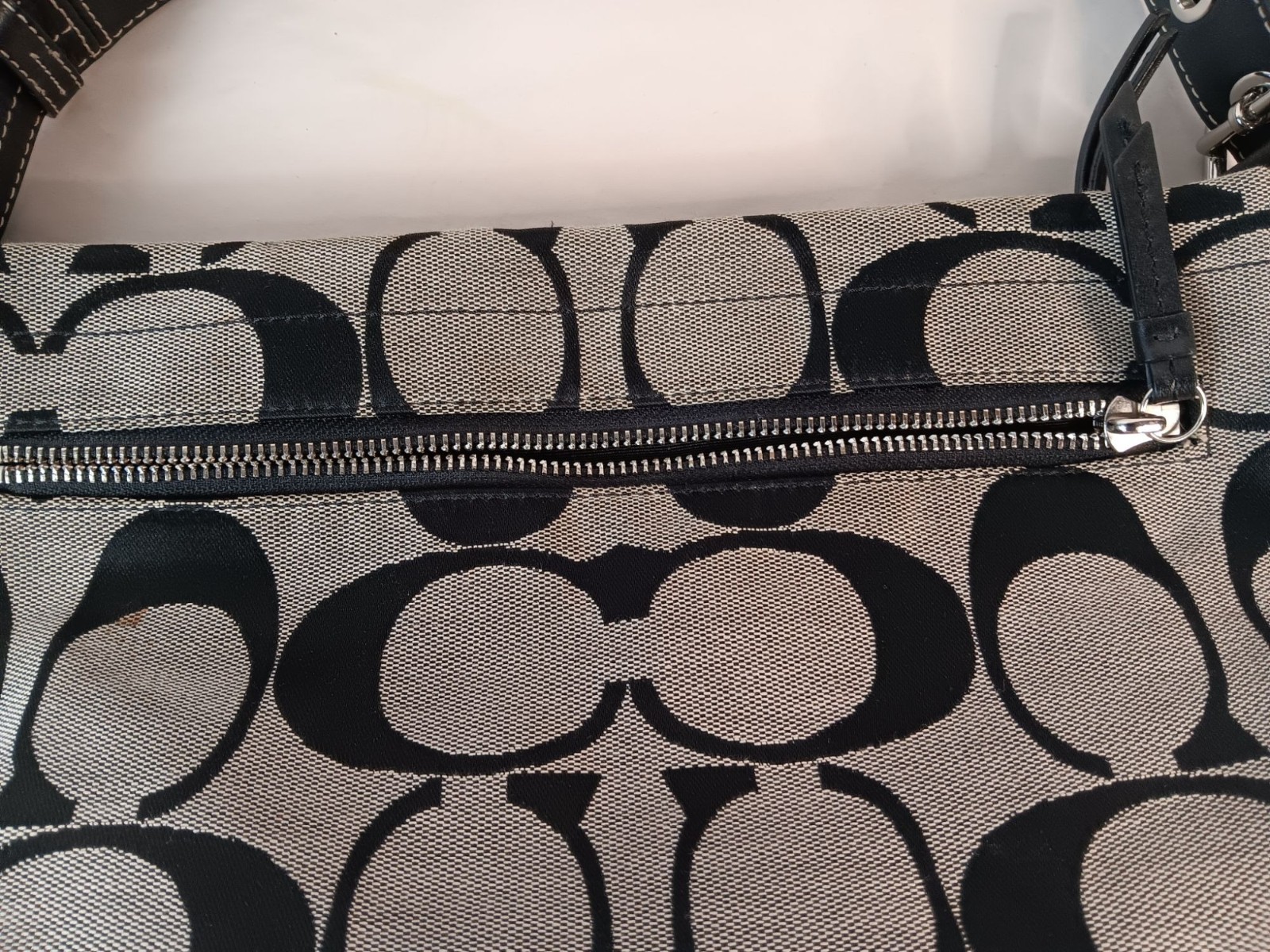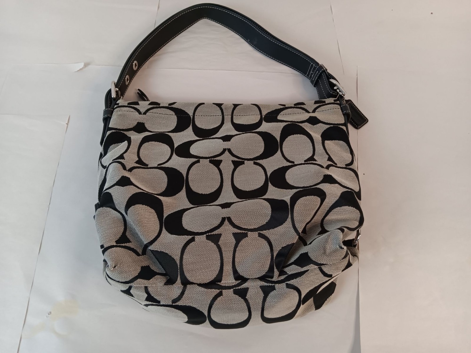 Coach Signature Black & Gray Fabric Shoulder Bag With Adjustable Strap
