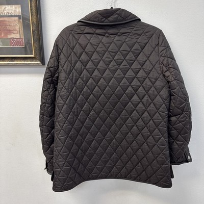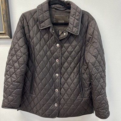 Coach Women Brown Quilted/leather Jacket Coat Lightweight Signature Lining L
