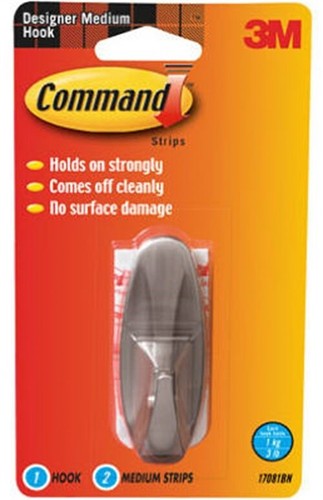 Command Medium Plastic Designer Hooks 3.125 in. L 1 pk (Pack of 8)