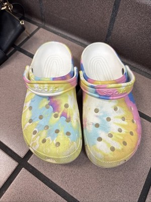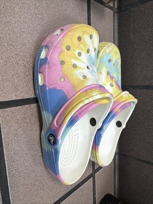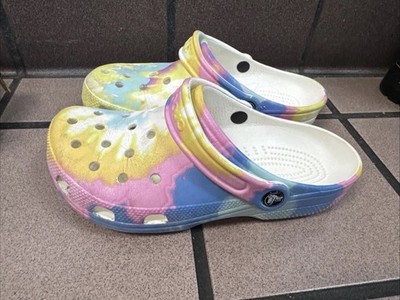 Crocs Classic Tie-Dye Graphic Clogs - White/Multi PASTELS New sz 9 W / 7 M