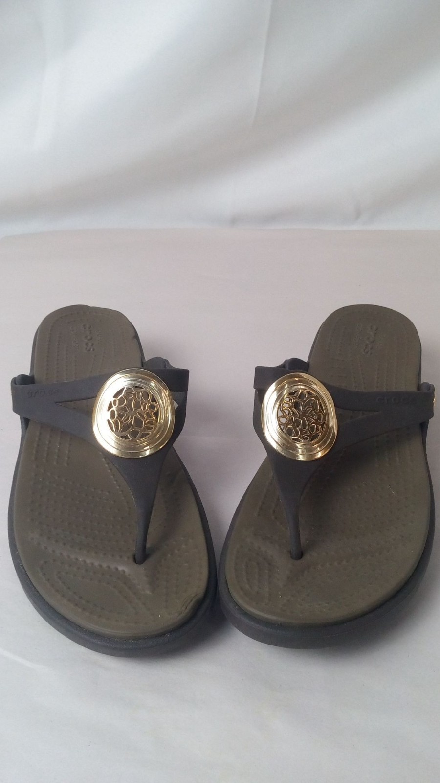 Crocs Womens Wedge Sandals Size 11 Black/Gold Comfortable