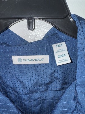 Cubavera Guayabera Shirt Men's 2XLT Short Sleeve Embroidered Pockets Blue