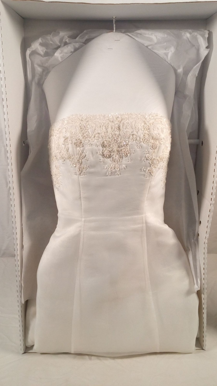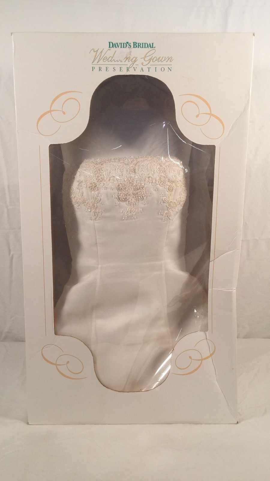 Davids Bridal Wedding Gown Preservation Box Size 6 Strapless White Gown With Emb
