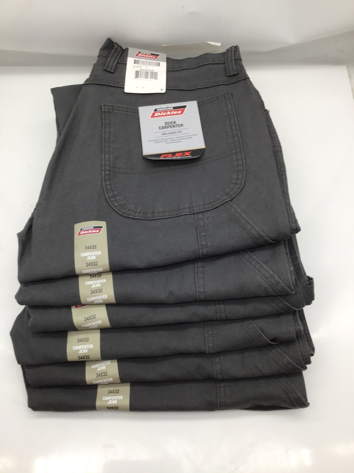 Dickies Mens Carpenter Relaxed Flex Fit Grey Pants Bundle - Size-34x32 - 6 Pairs