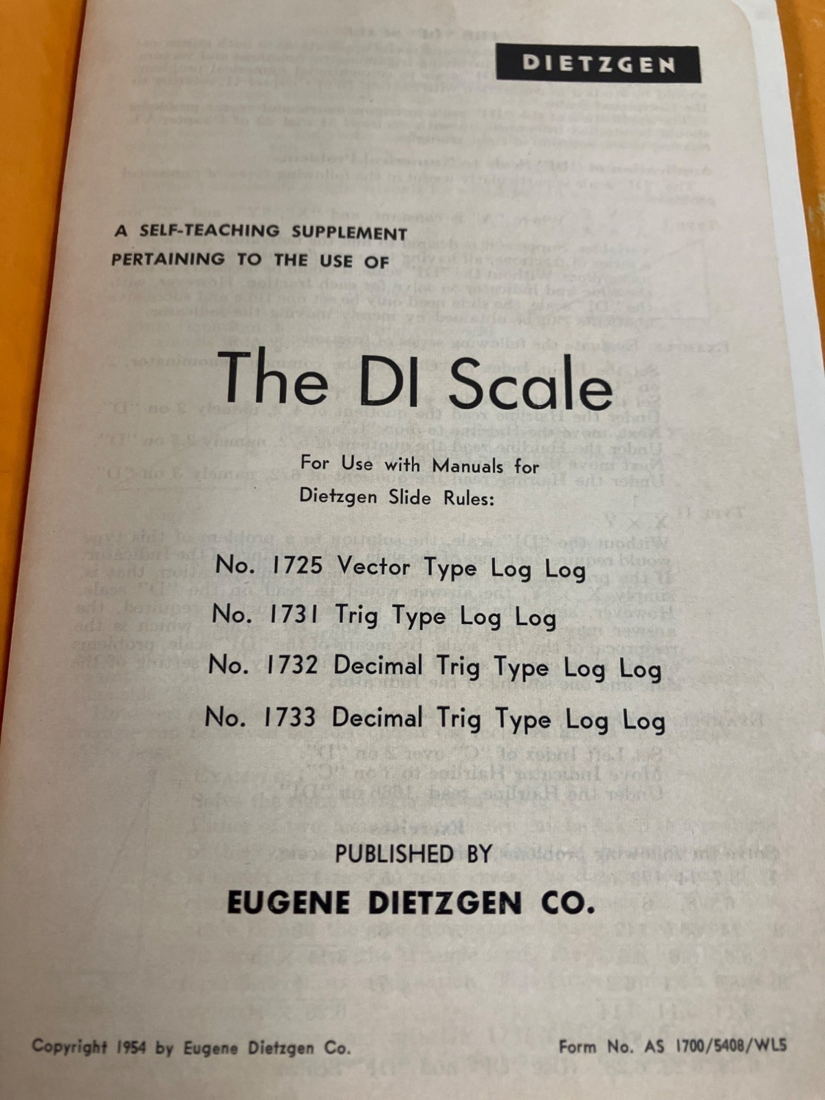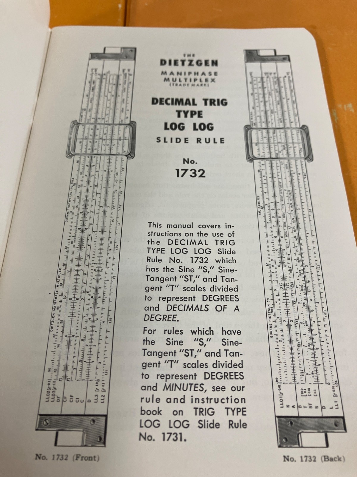 Dietzgen Decimal Trig Type Log Log Slide Rule No. 1732 & Monarch Drawing Set