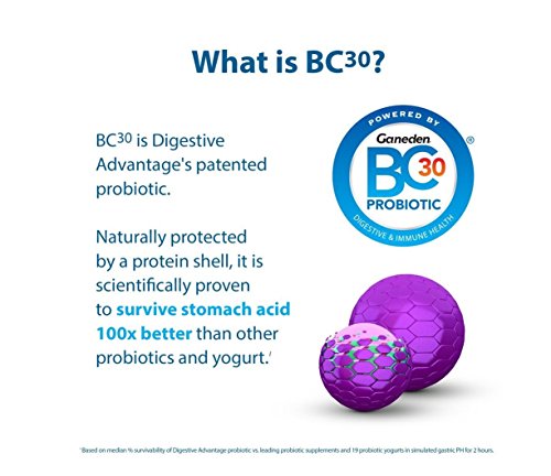 - Uses BC30, a unique patended probiotic that survives stomach acid 100x better than leading probiotics and yogurts