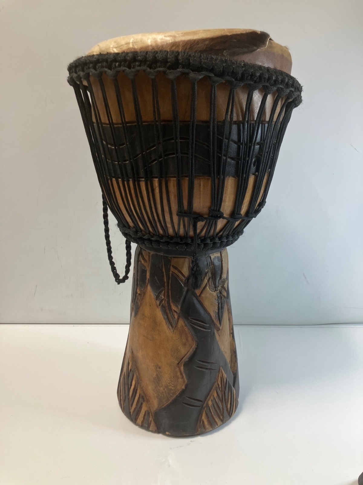 Djembe Drum Full Size African Handmade Carved 24" tall, 12" drum NEEDS NEW SKIN