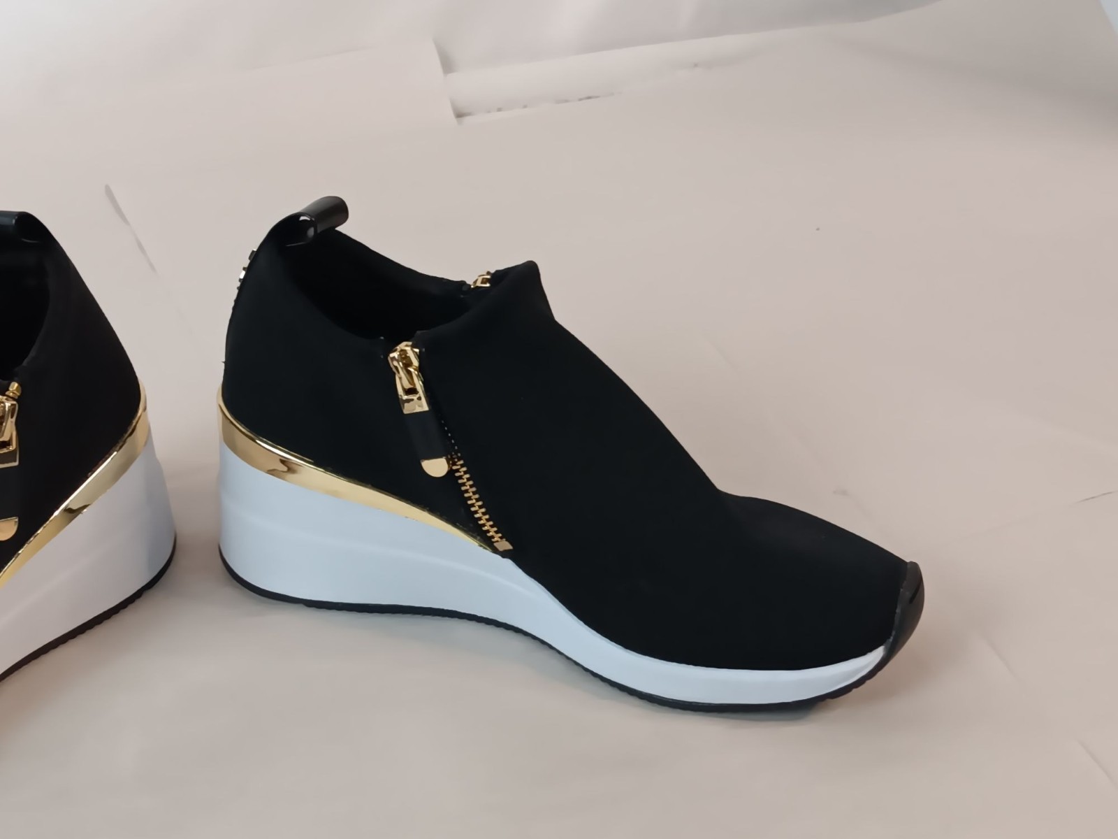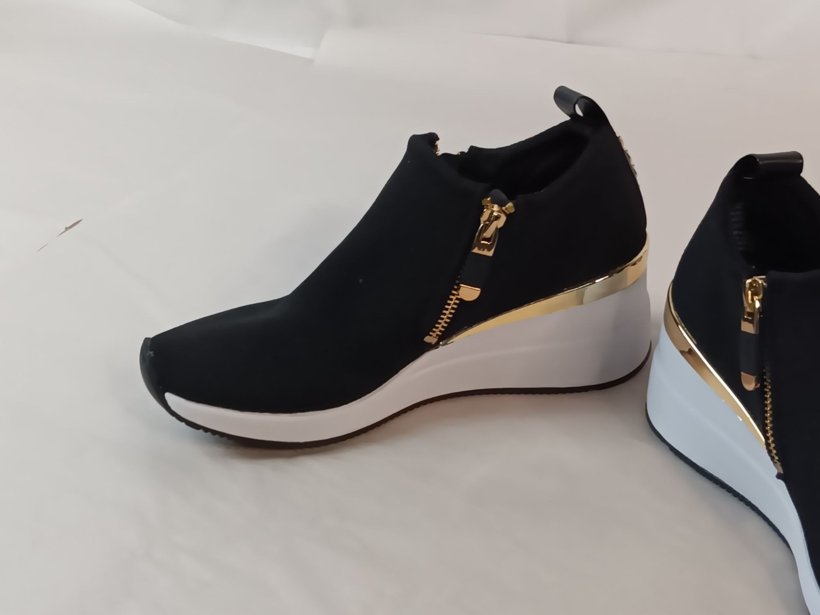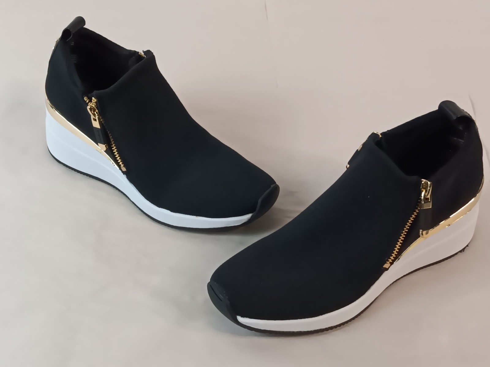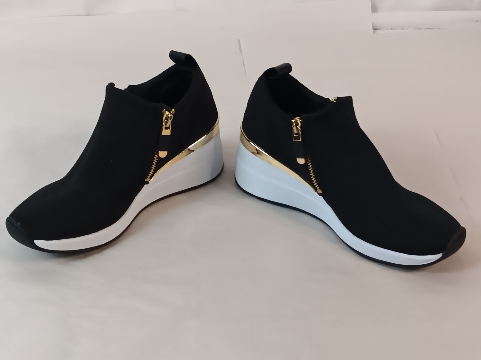 DKNY Palma Black & Gold Ankle Wedge Sneakers 7.5 US / 38B EU
