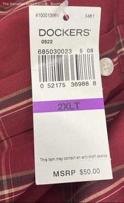 Dockers Mens Red Plaid Collared Long Sleeve Casual Button-Up Shirt Size 2XLT