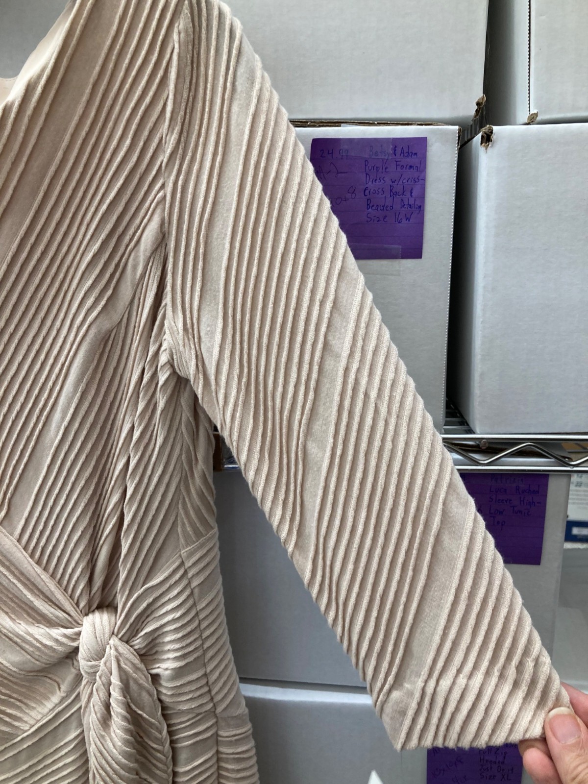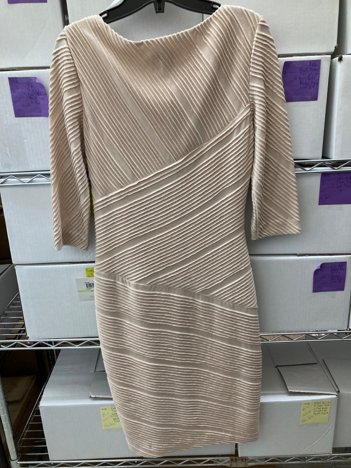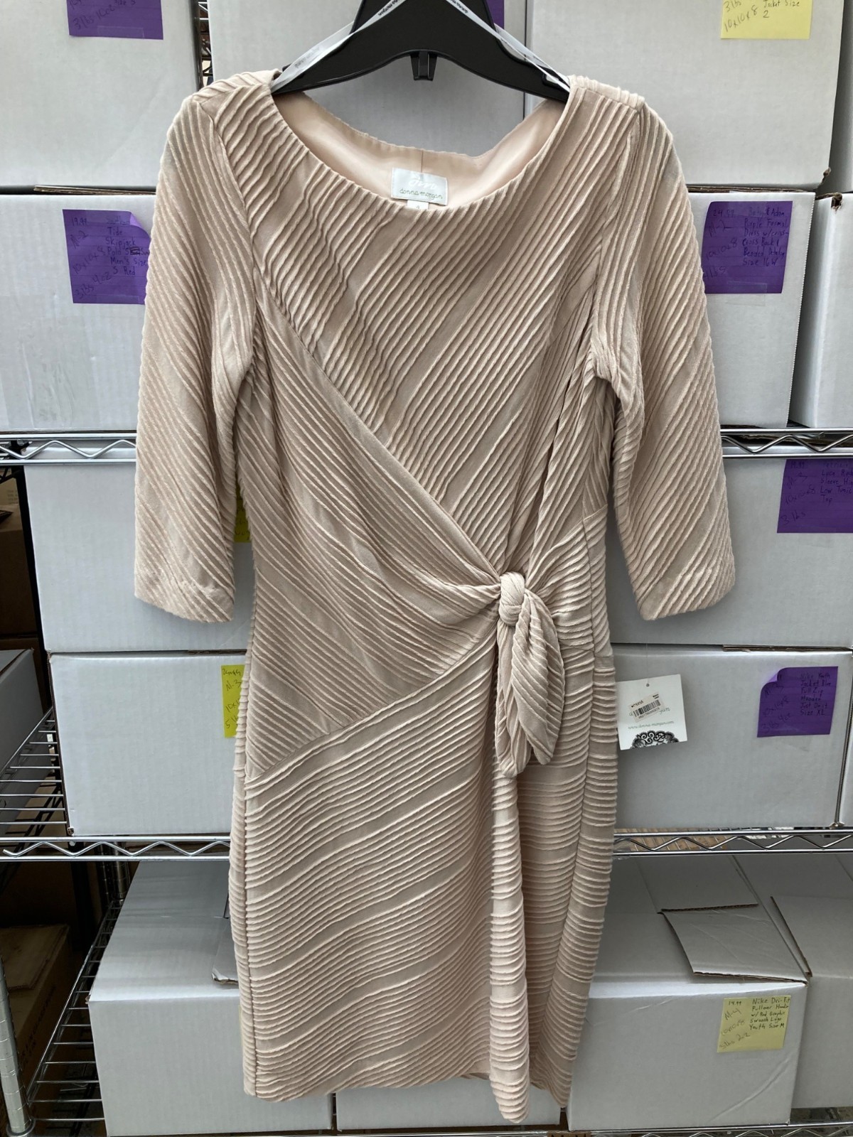 Donna Morgan Women's Ruched 3/4-Sleeve Midi Dress Oatmeal Size 4