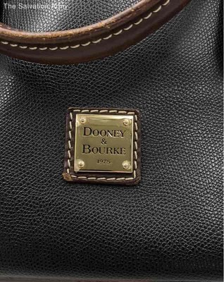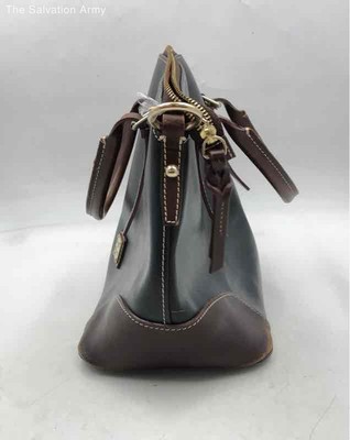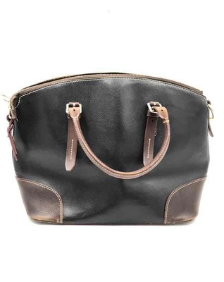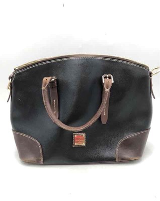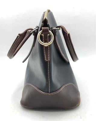 Dooney & Bourke Womens Black Brown Leather Zipper Top Handle Satchel Purse