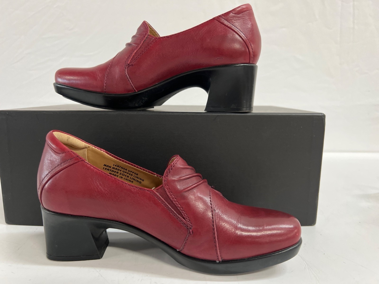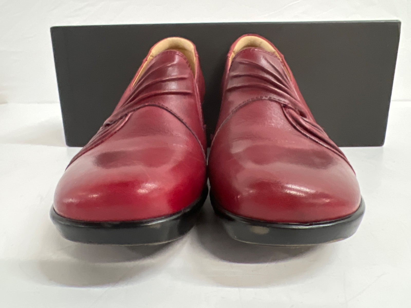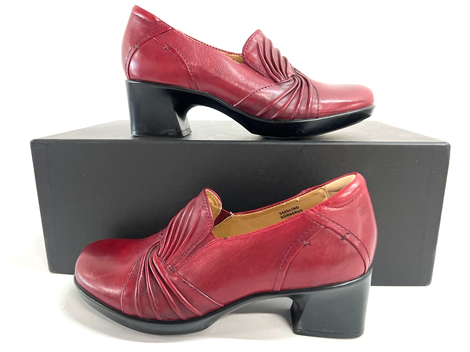 EARTH Seedling Bordeaux Leather Pleated Loafer Heels Women Size 5.5B