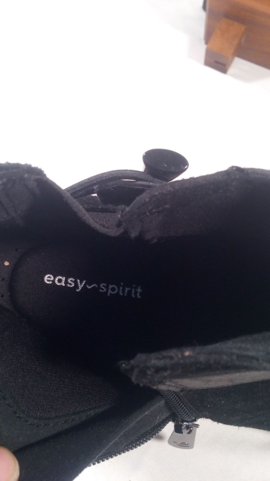 Easy Spirit Black Suede Ankle Boots With Zipper Closure Strap 9 1/2