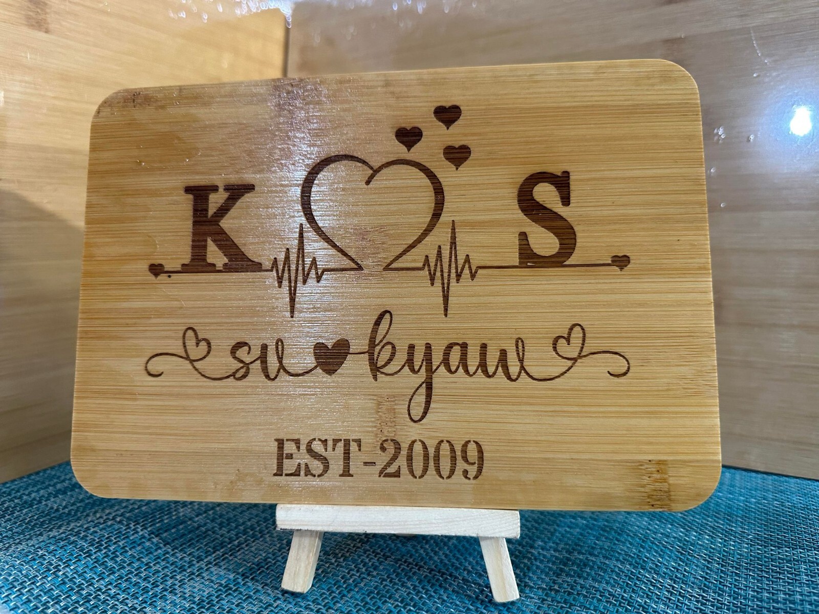 Engraved Couple Personalized Monogram EST year on Bamboo board Desk Decoration