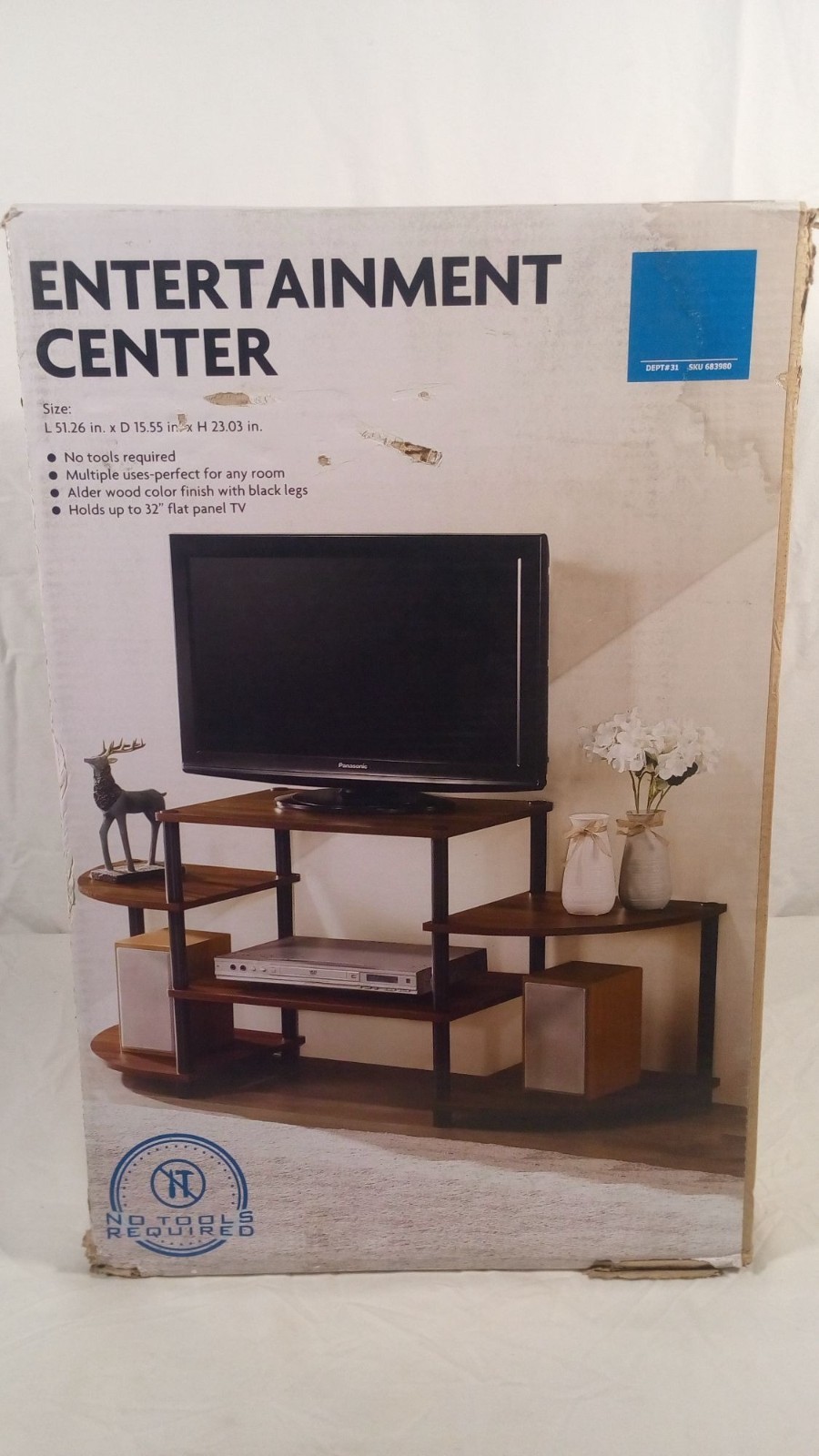 Entertainment Center 51.26" X 15.55" X 23.03" Alder Wood Finish Black Legs Holds