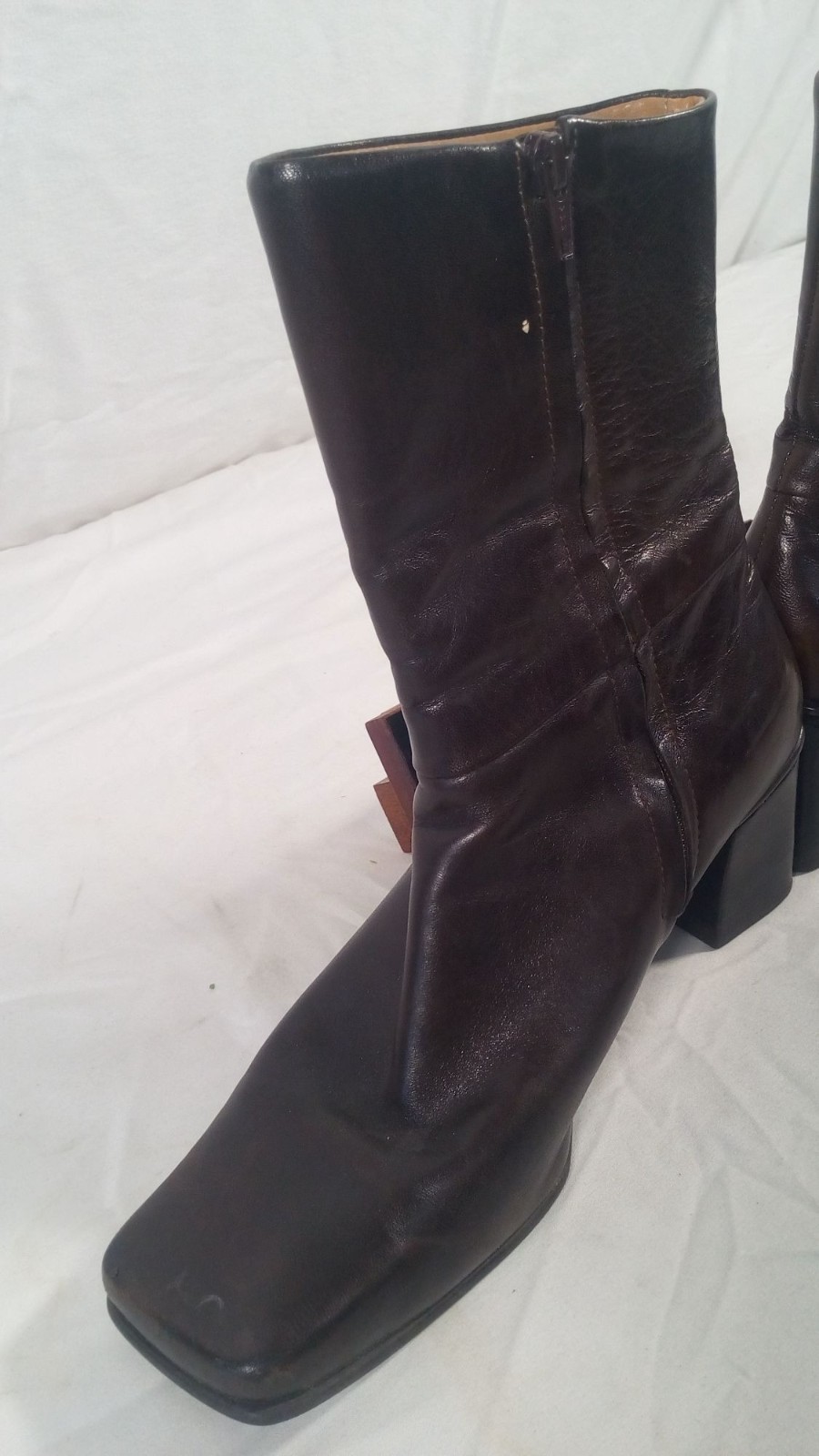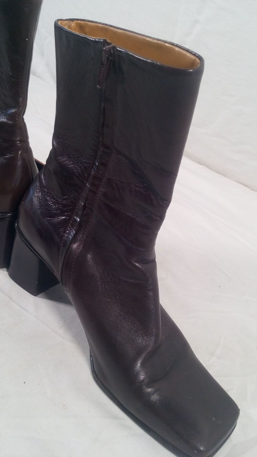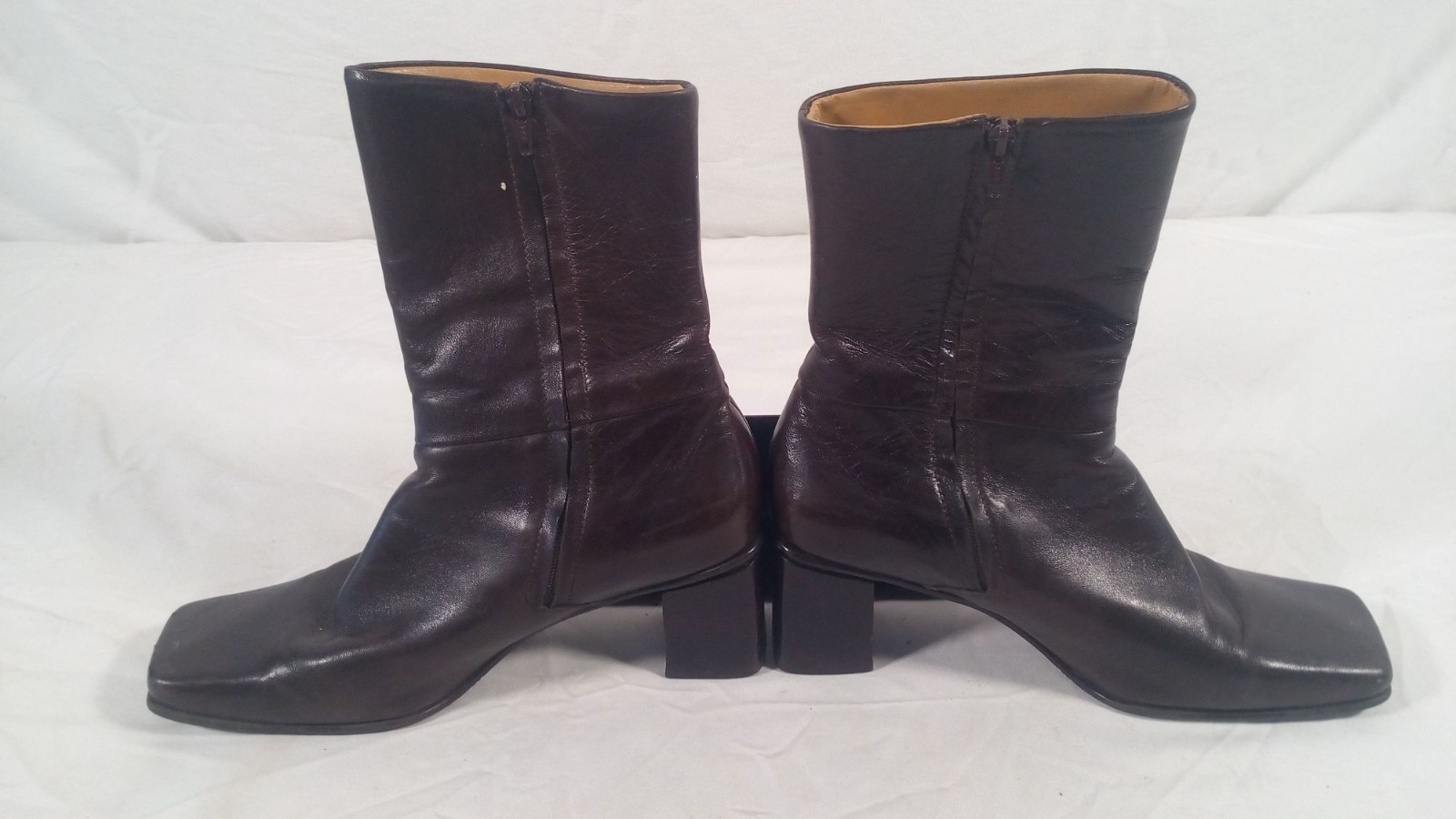 Etienne Aigner Womens Square Toe Leather Ankle Boots Size 7M Brown