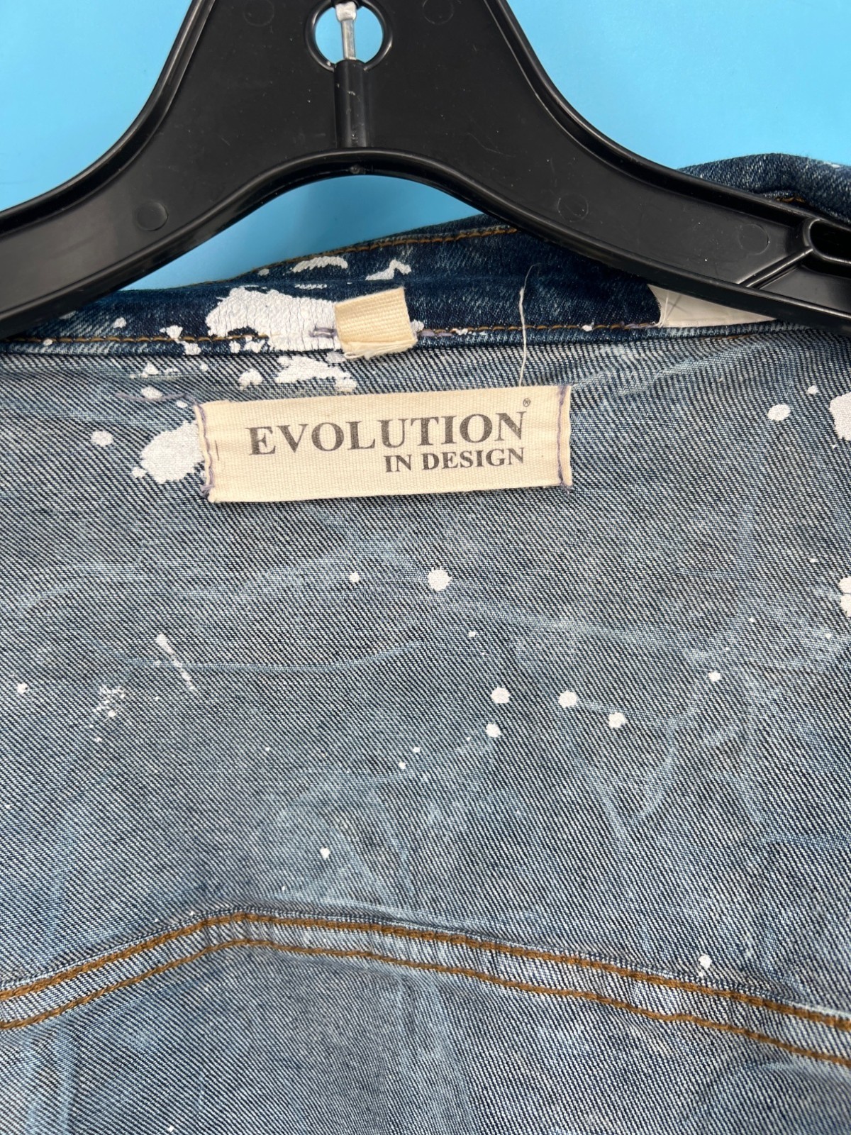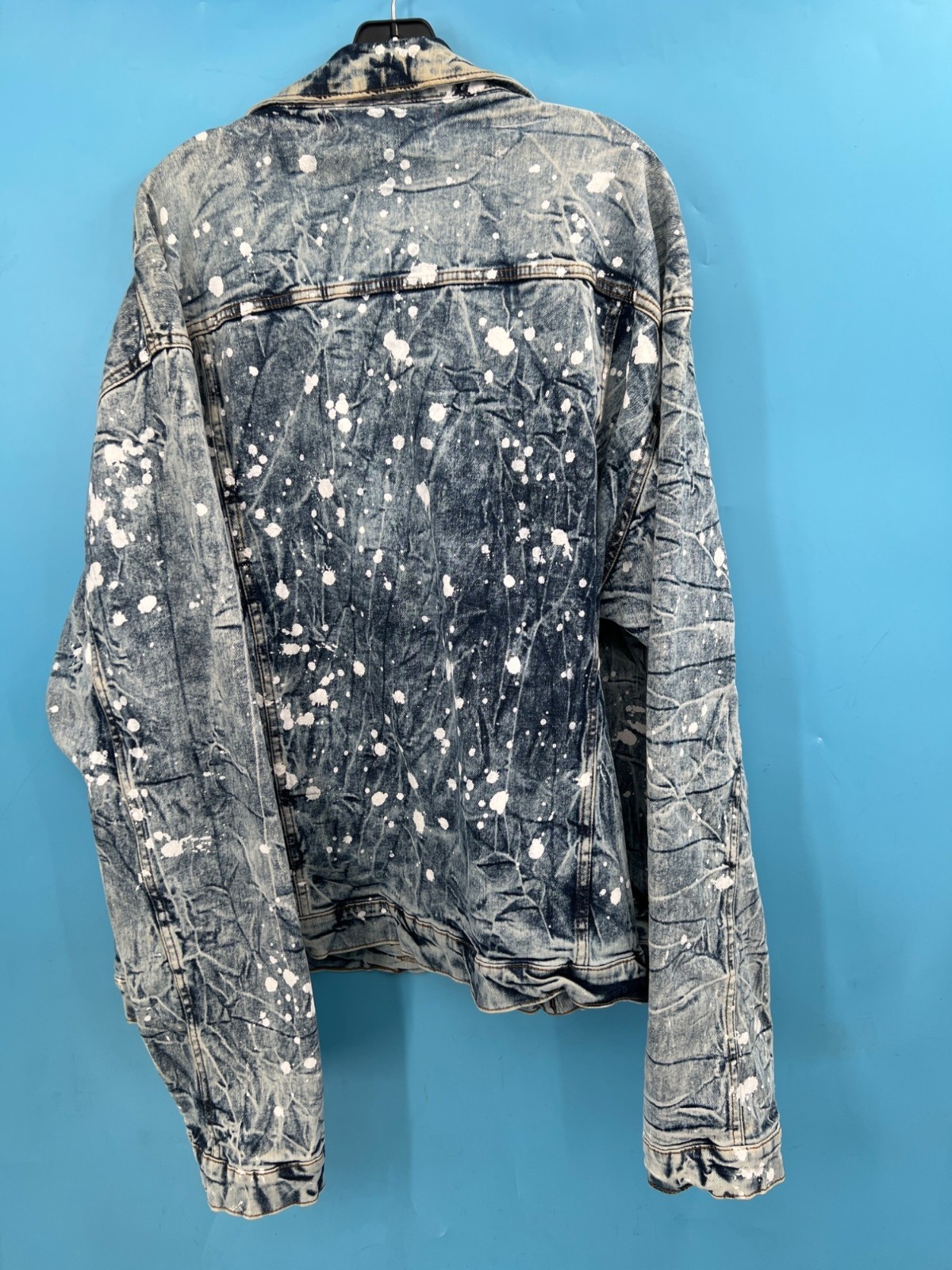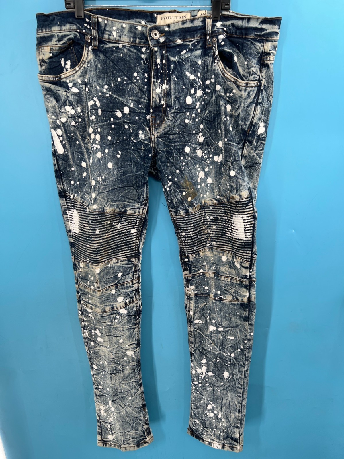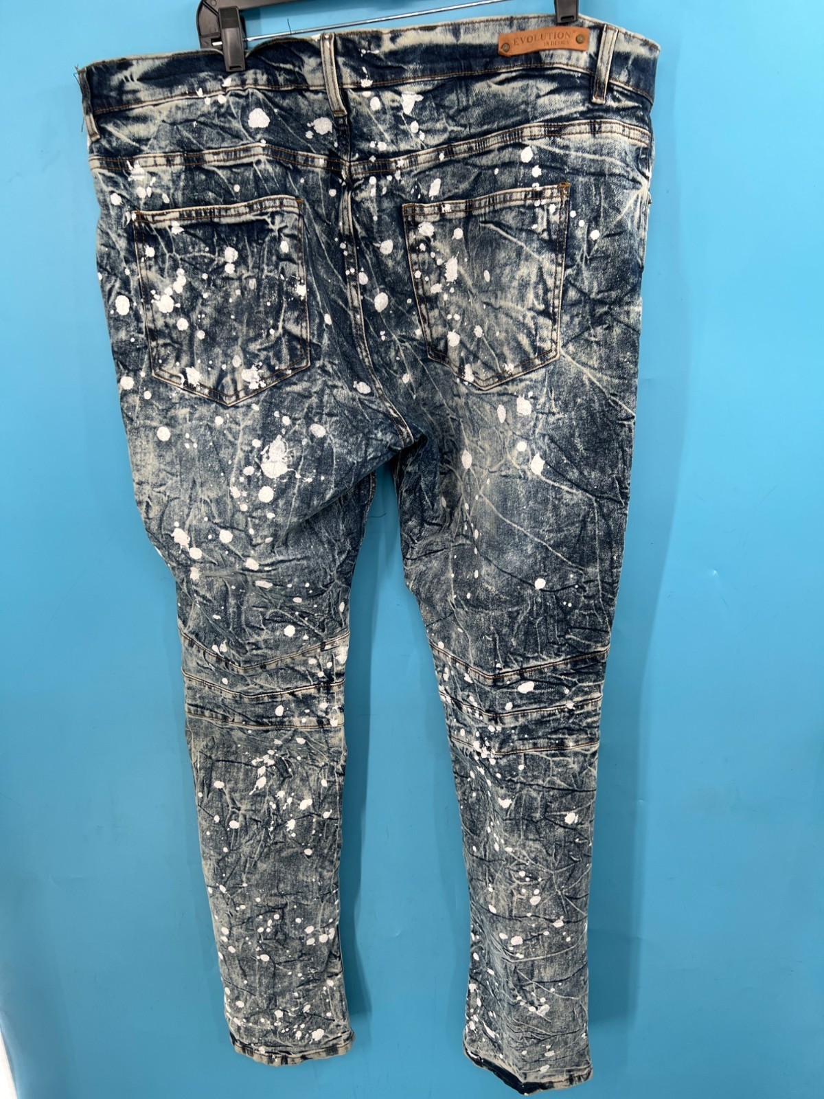 EVOLUTION In Design Paint Splatter Acid Wash Denim Jacket & Jeans Set Men