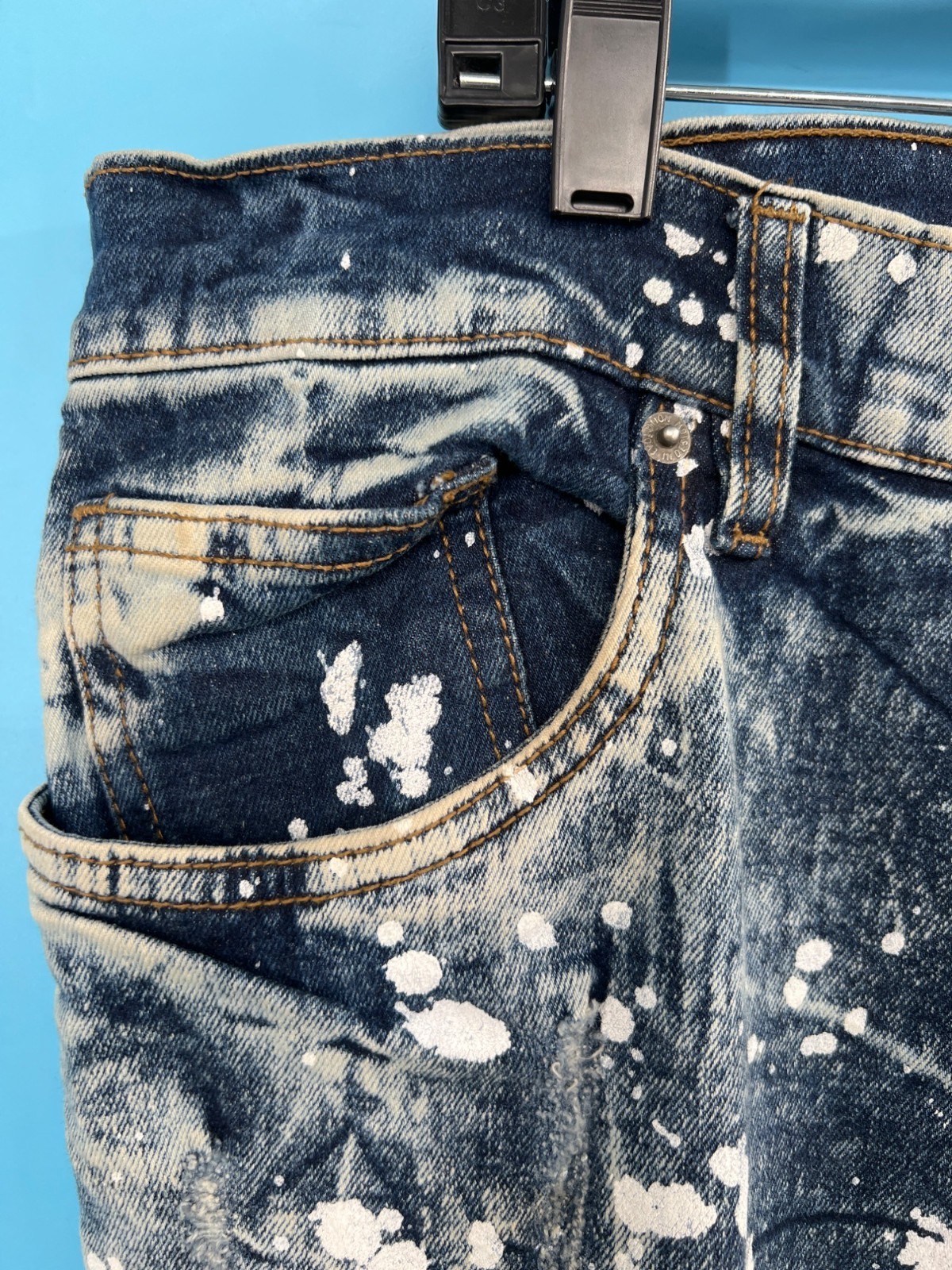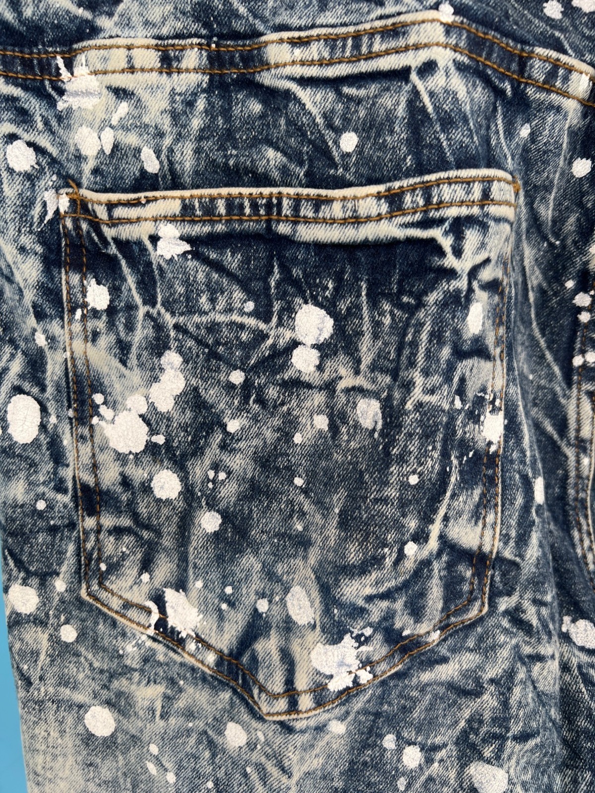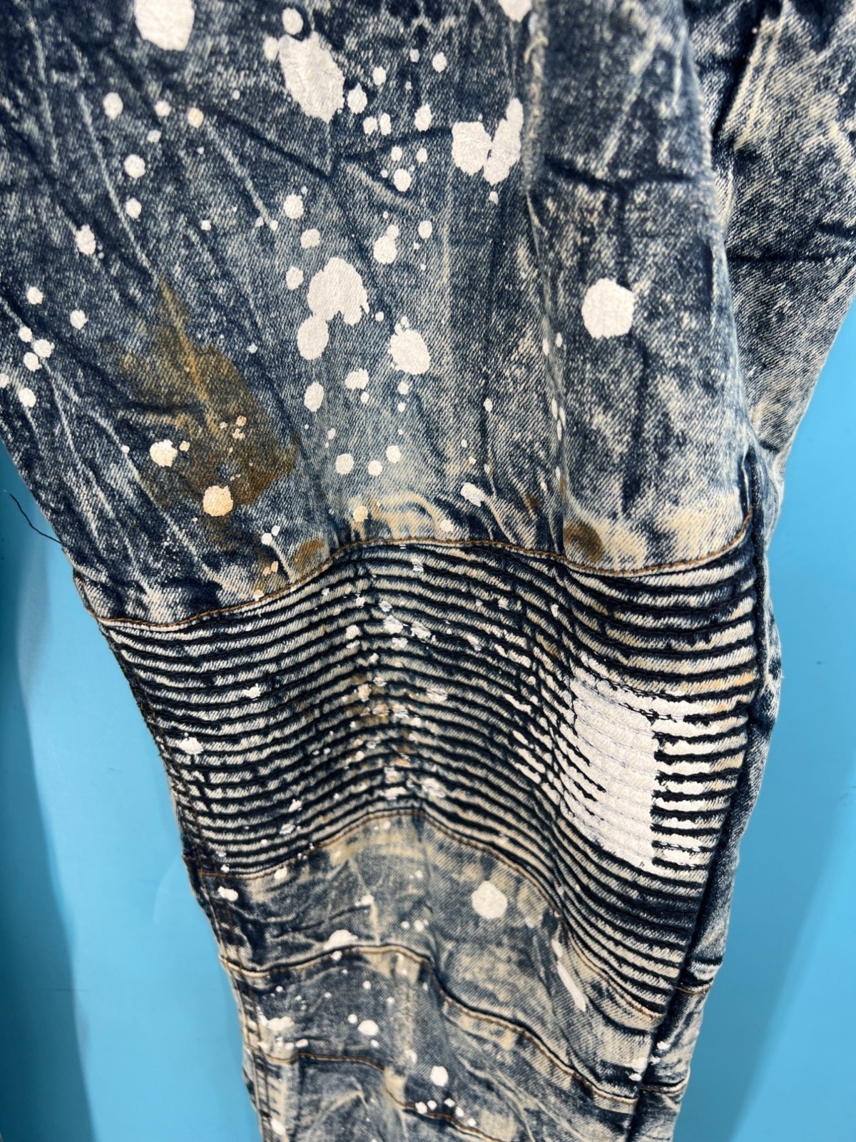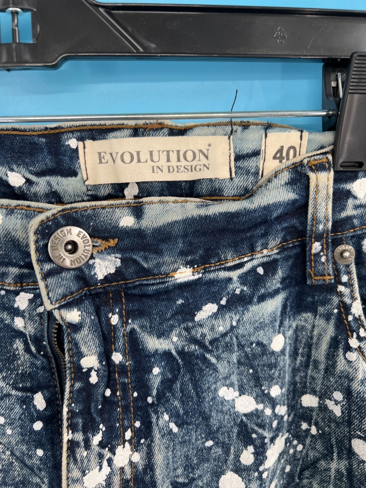 EVOLUTION In Design Paint Splatter Acid Wash Denim Jacket & Jeans Set Men