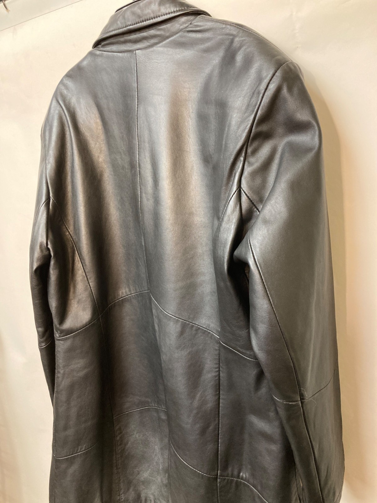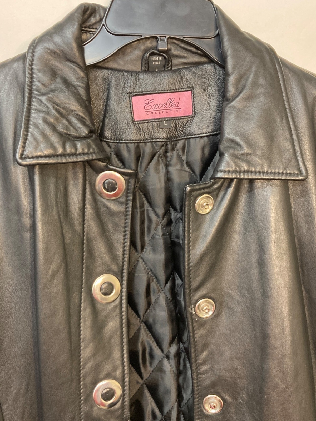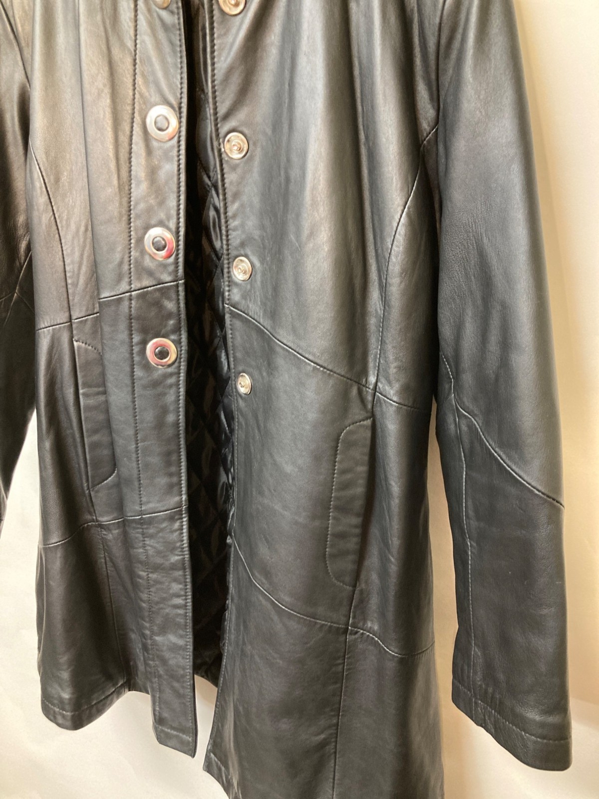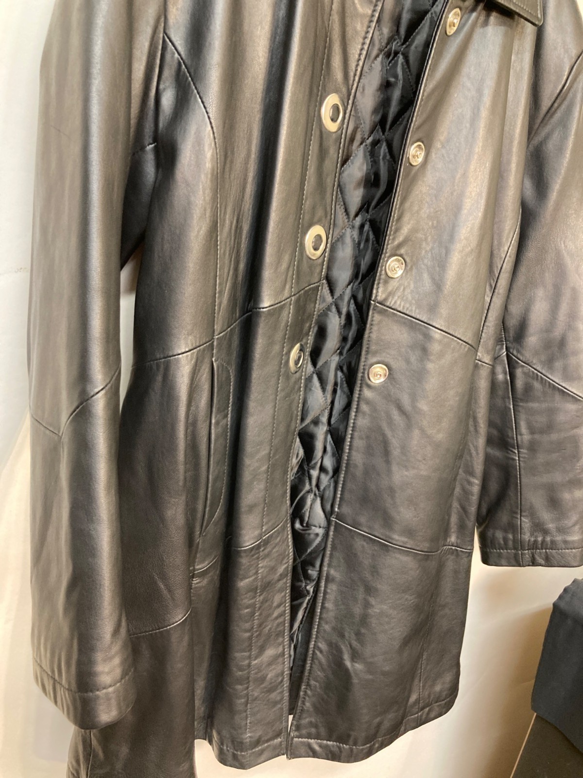 Excelled Collection Women's Black Leather Long Coat With Quilted Lining