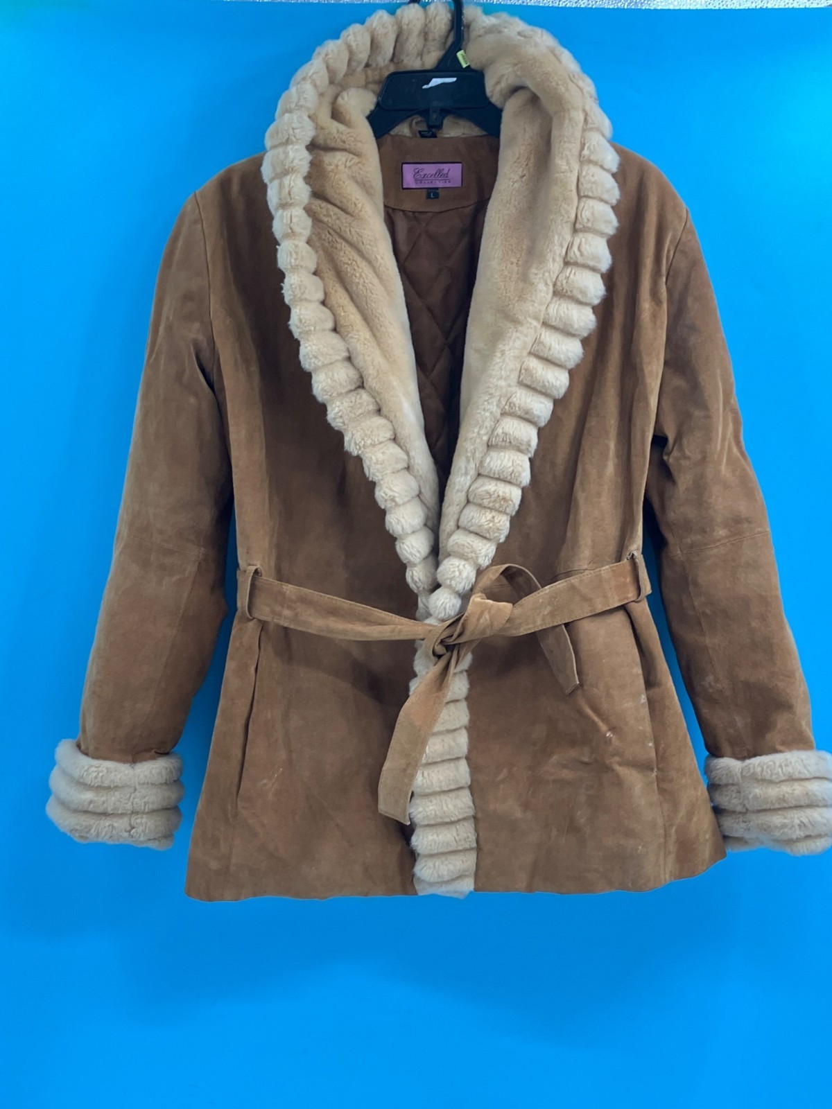 Excelled Collection Womens Brown Suede Hooded Jacket (size L)