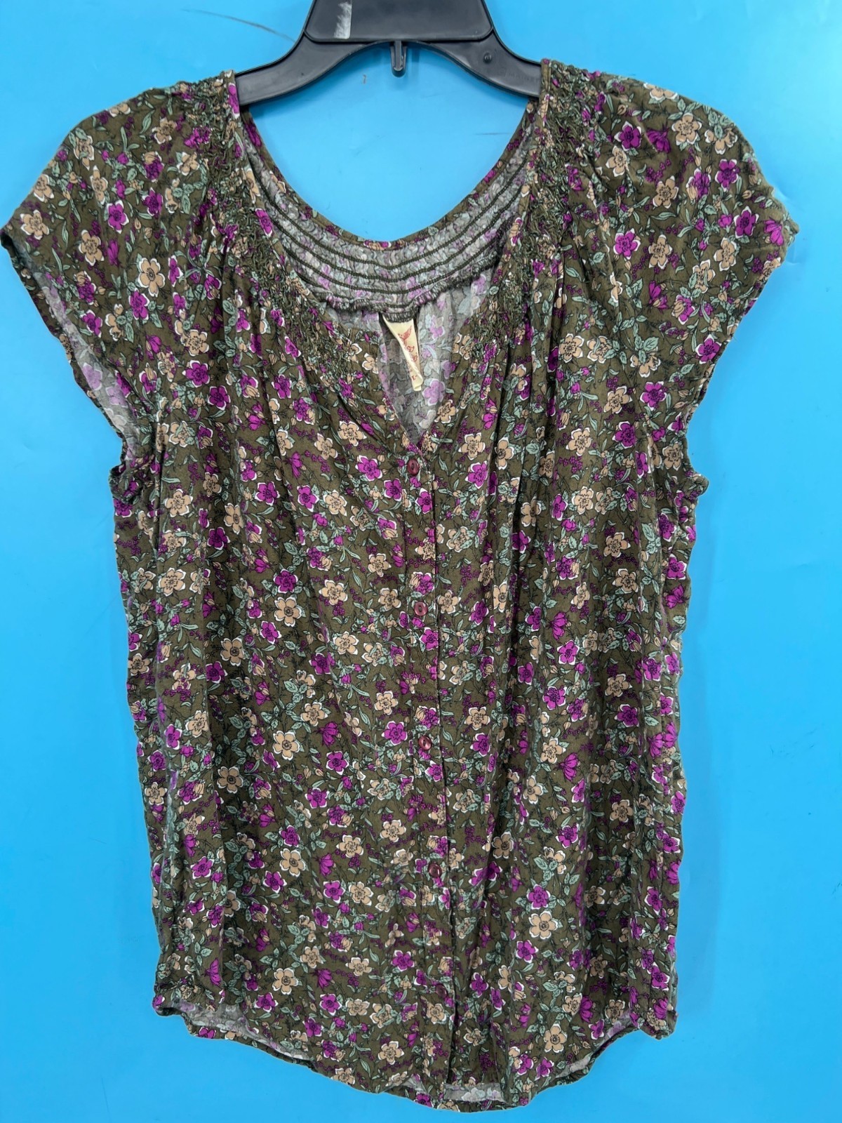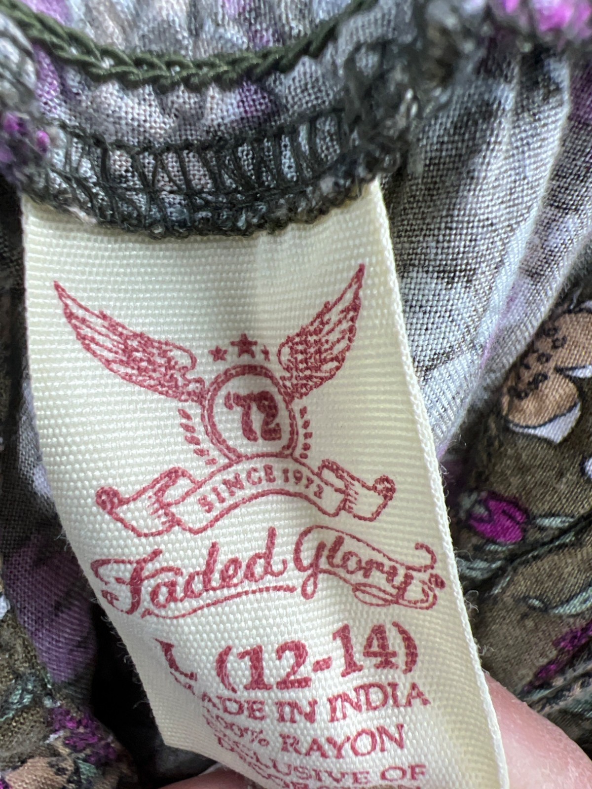 Faded Glory Women's Floral Green & Purple Top - Size-L(12-14)