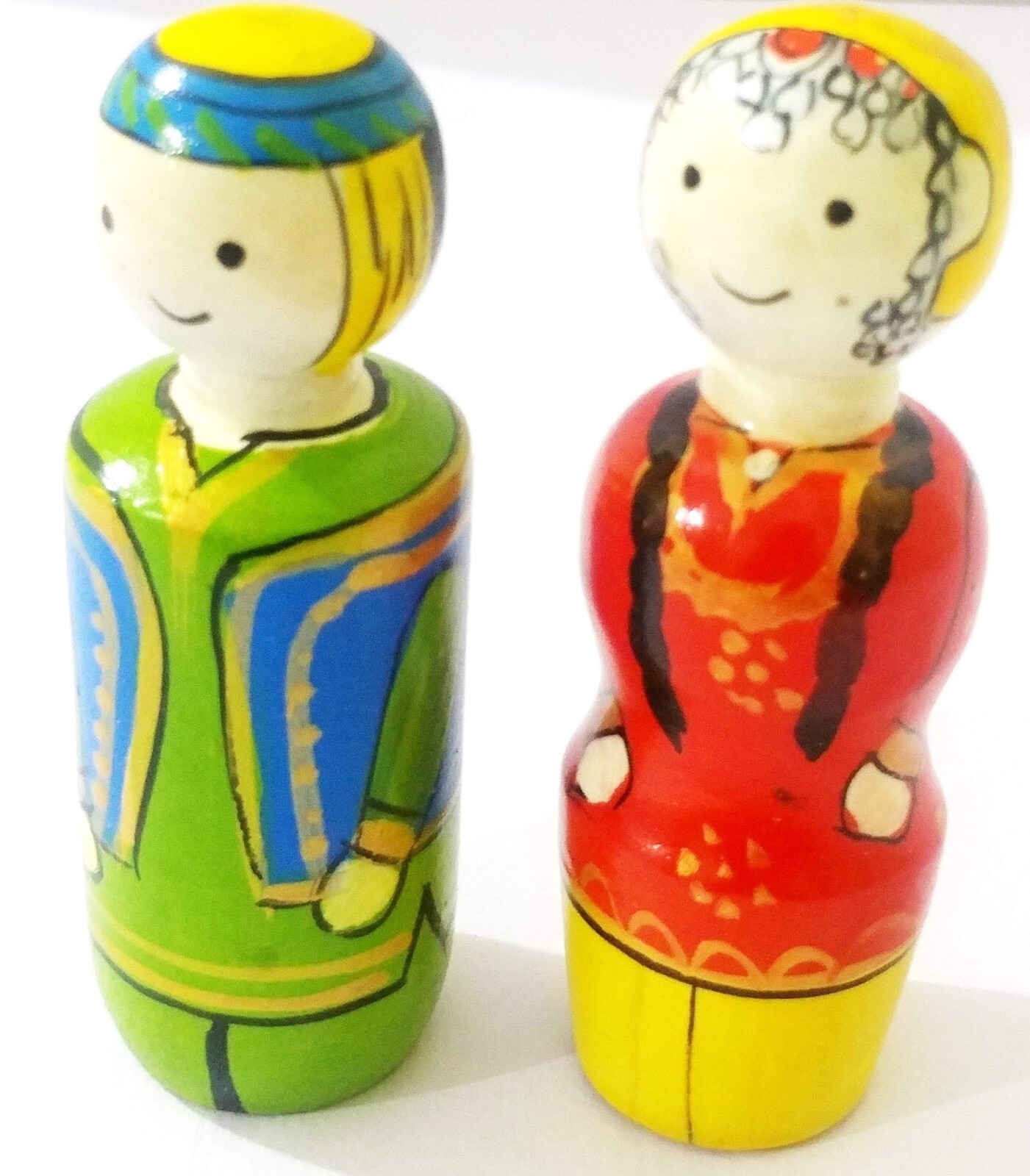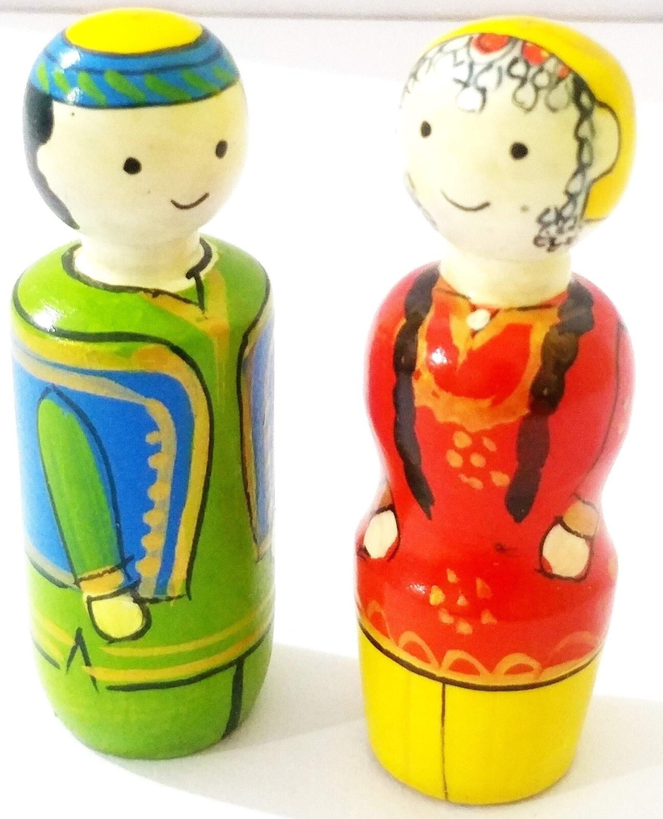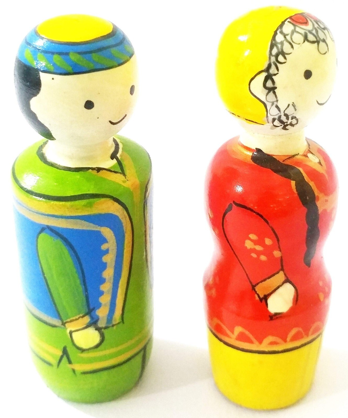 Fait-Main Channapatna Bois Kashmiri Associez Poupée / Jouet - Mr & Miss Bashir